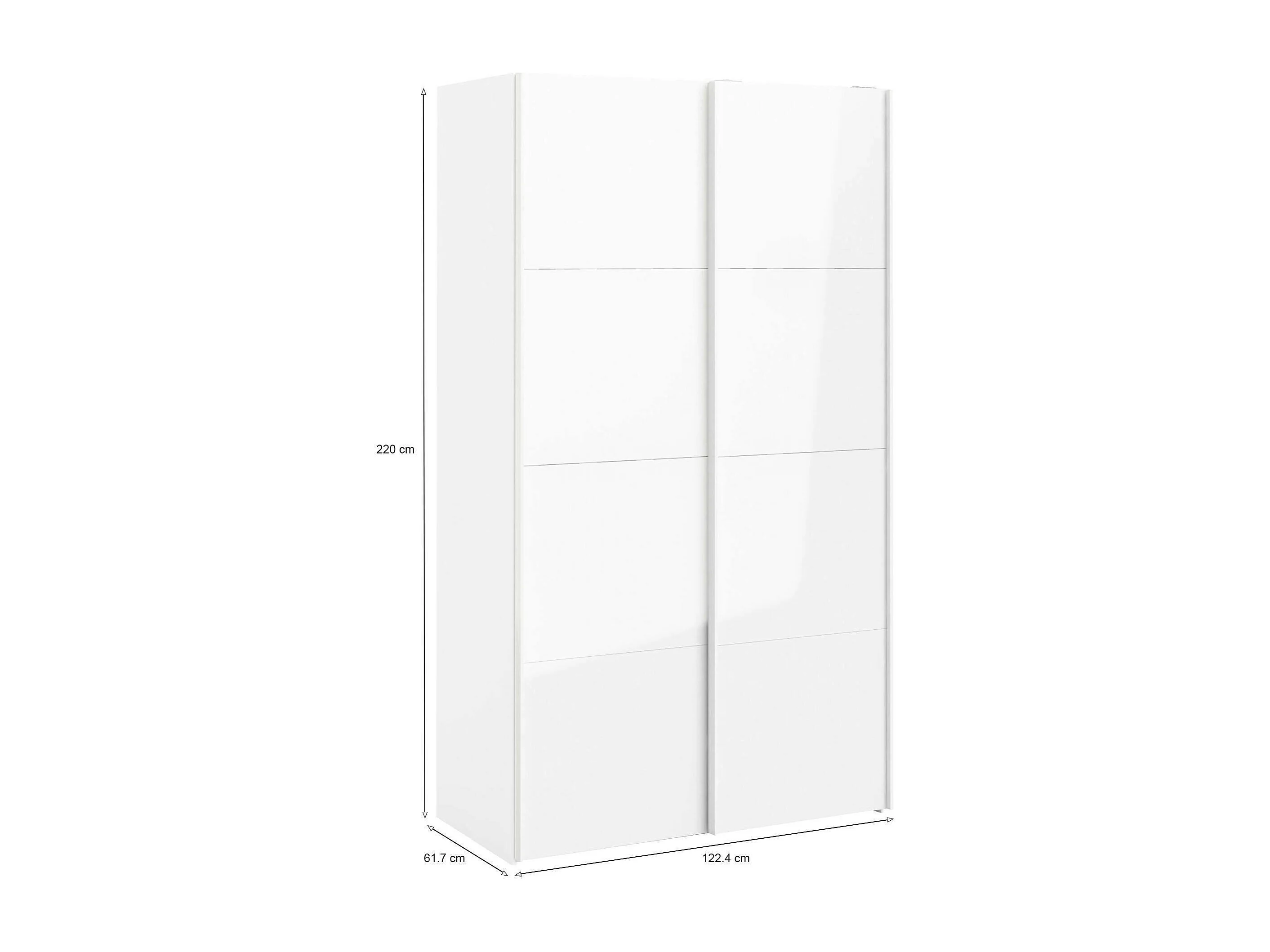 Garde-robe 2 portes Adria, Meubles de chambre, Penderie de plain-pied, Placard à vêtements, 122x62 h220 cm, Blanc brillant