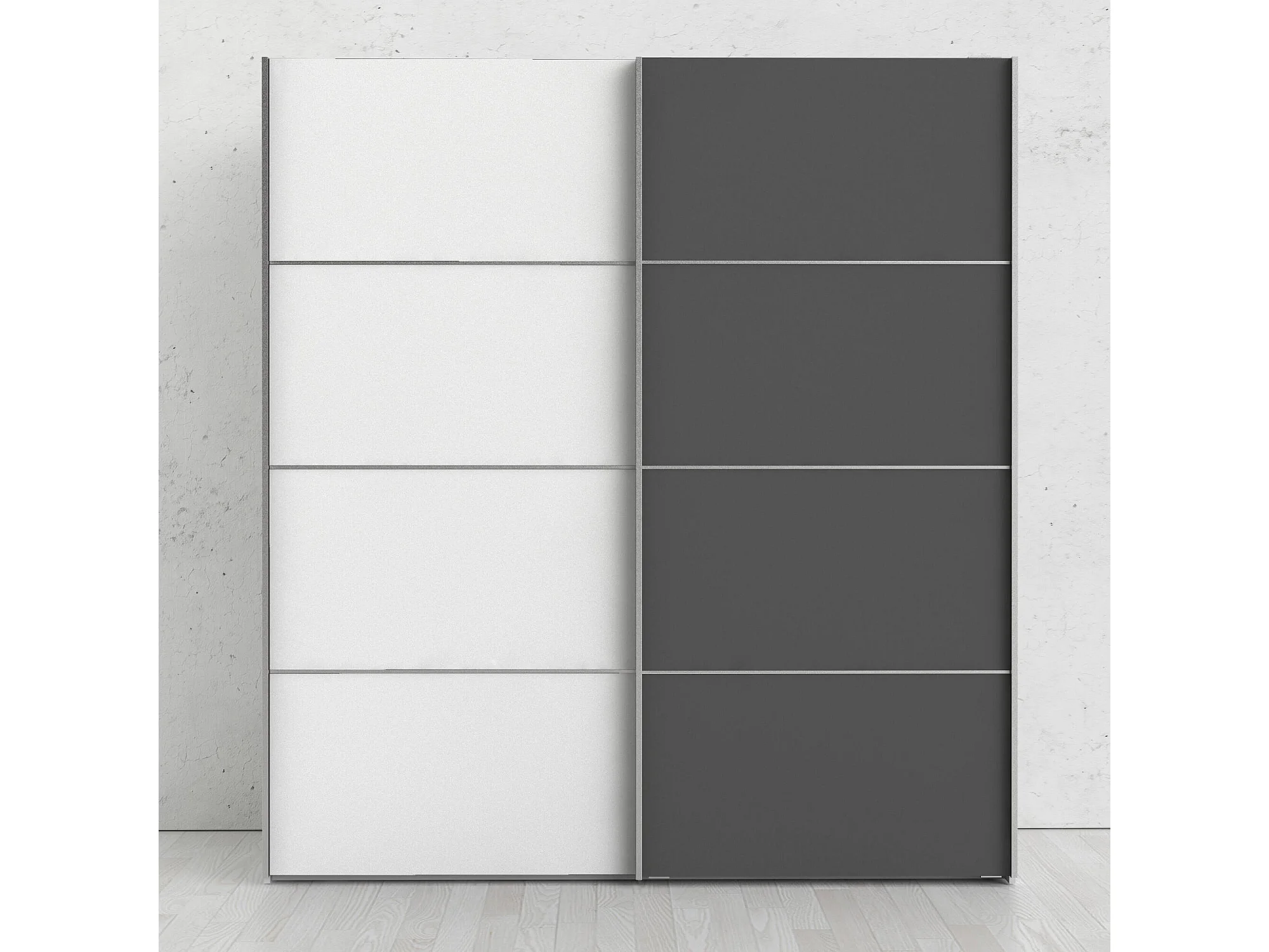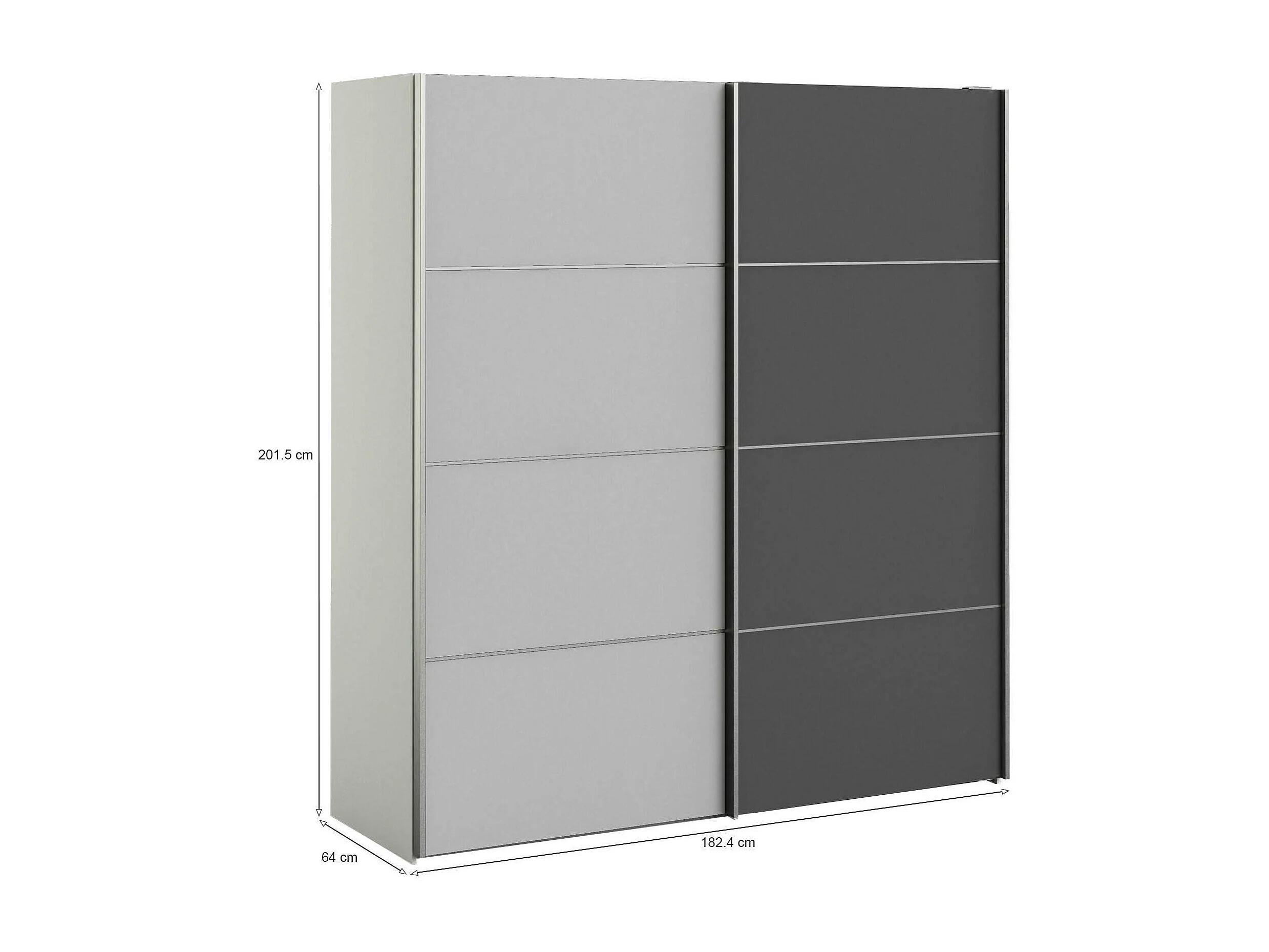 Garde-robe 2 portes Anela, Meubles de chambre, Penderie de plain-pied, Placard à vêtements, 182x64 h202 cm, Gris et Blanc