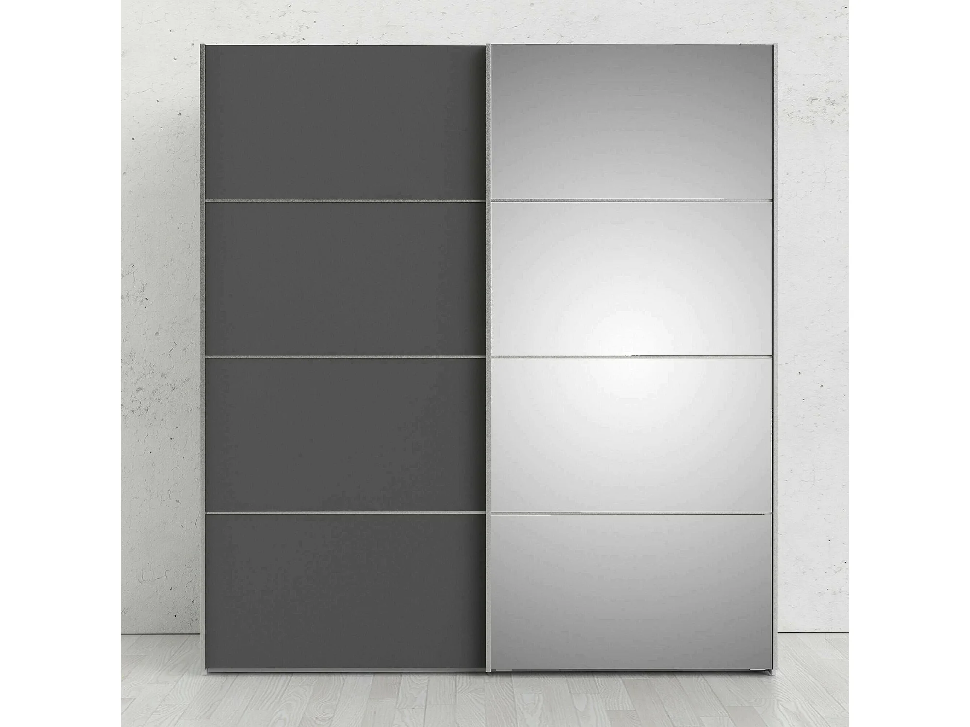 Garde-robe 2 portes Cerreto, Meubles de chambre, Penderie de plain-pied, Placard à vêtements, 182x64 h202 cm, Gris et Blanc