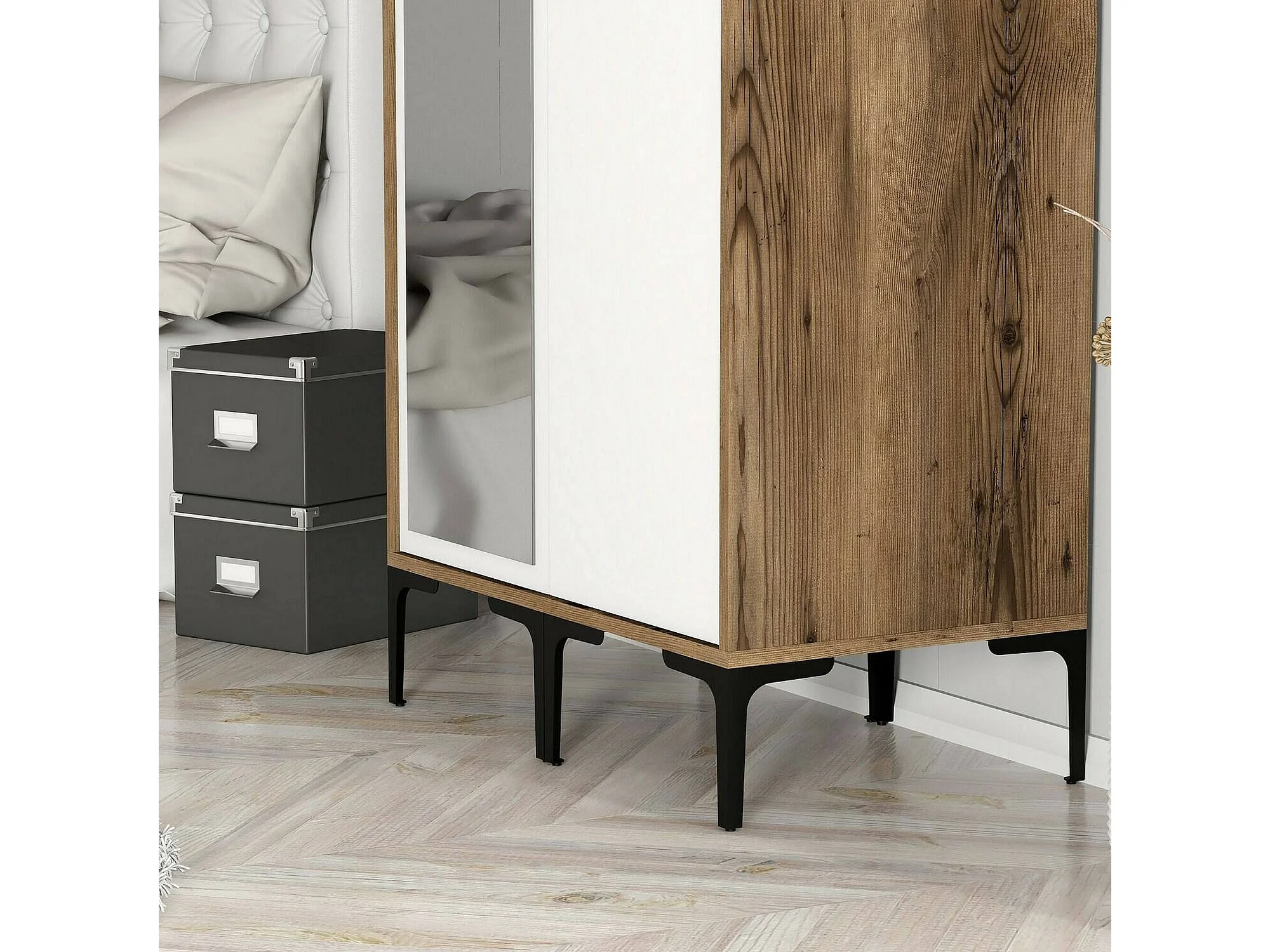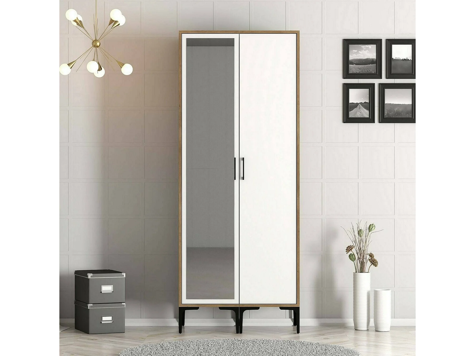 Garde-robe 2 portes Dbergonz, Meubles de chambre, Penderie de plain-pied, Placard à vêtements, 80x201h48 cm, Noyer et Blanc