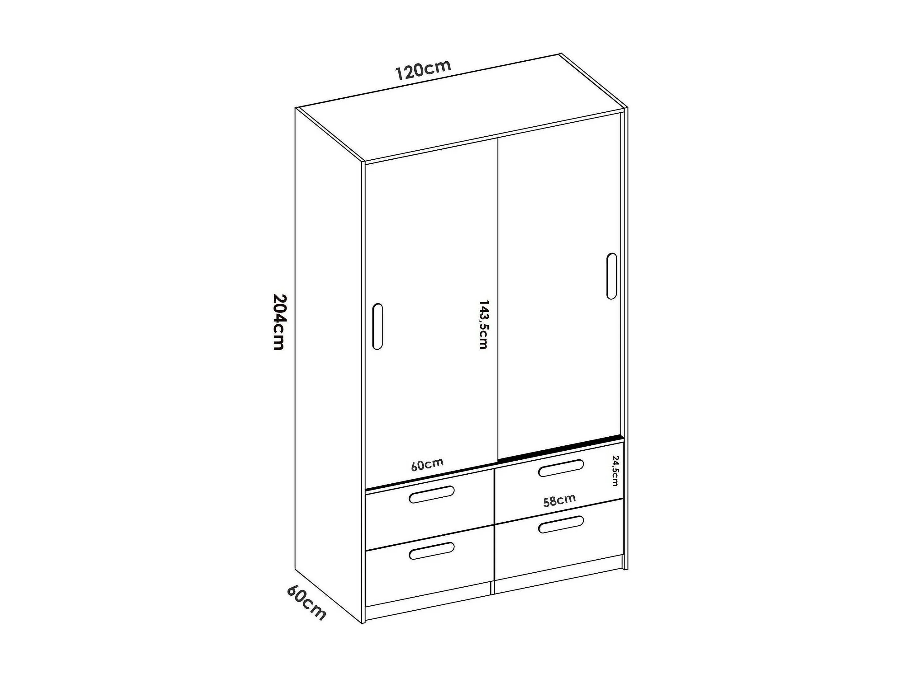 Garde-robe 2 portes Dbradle, Meubles de chambre, Penderie de plain-pied, Placard à vêtements, 120x60 h204 cm, Blanc et Chêne clair