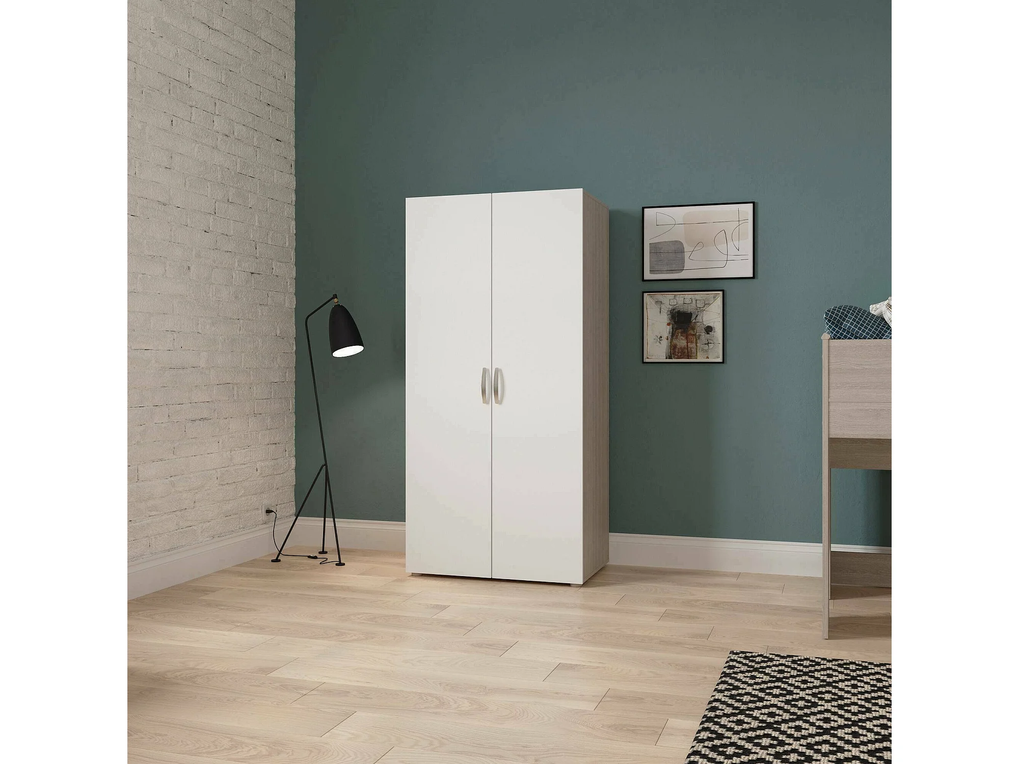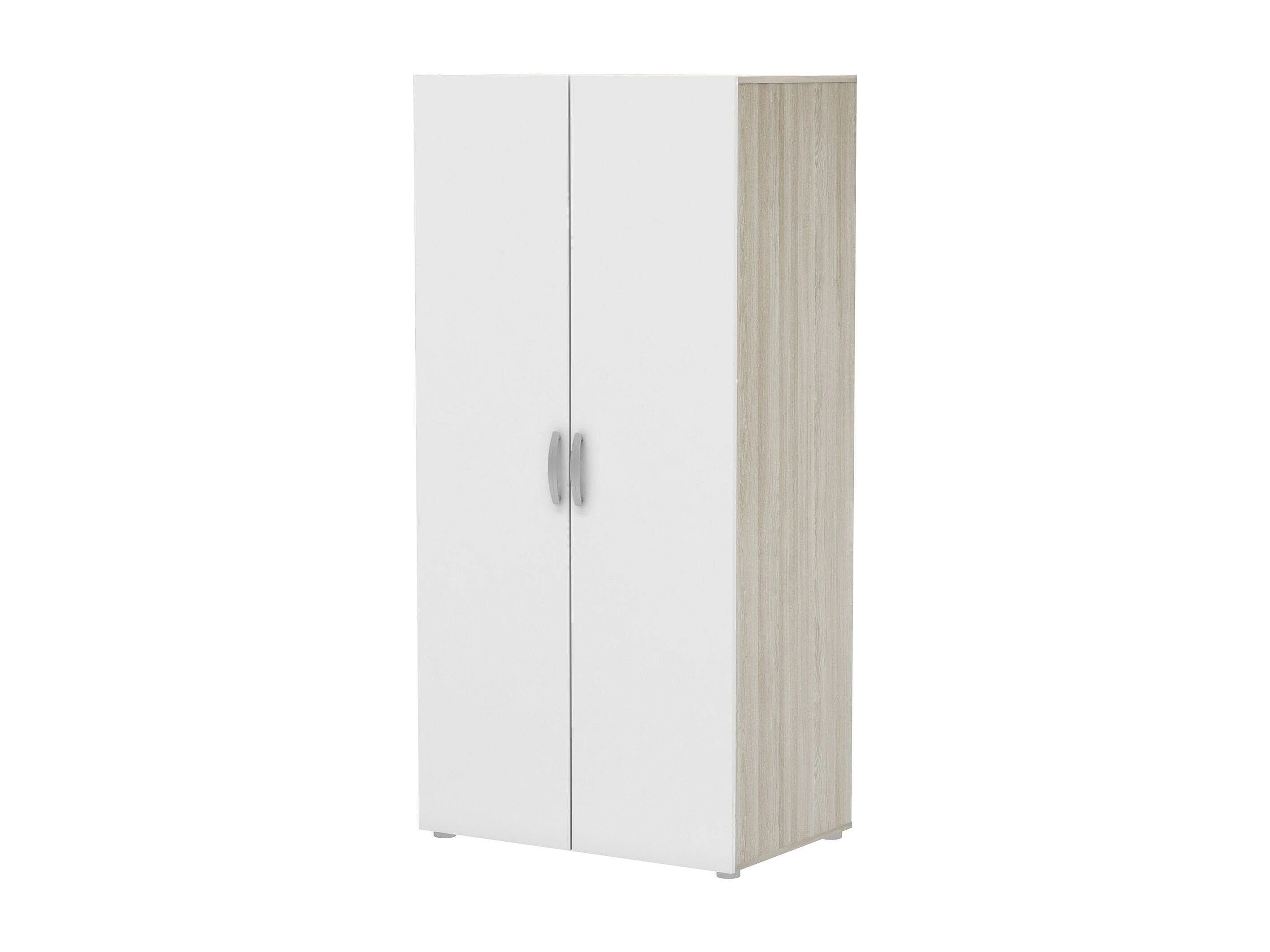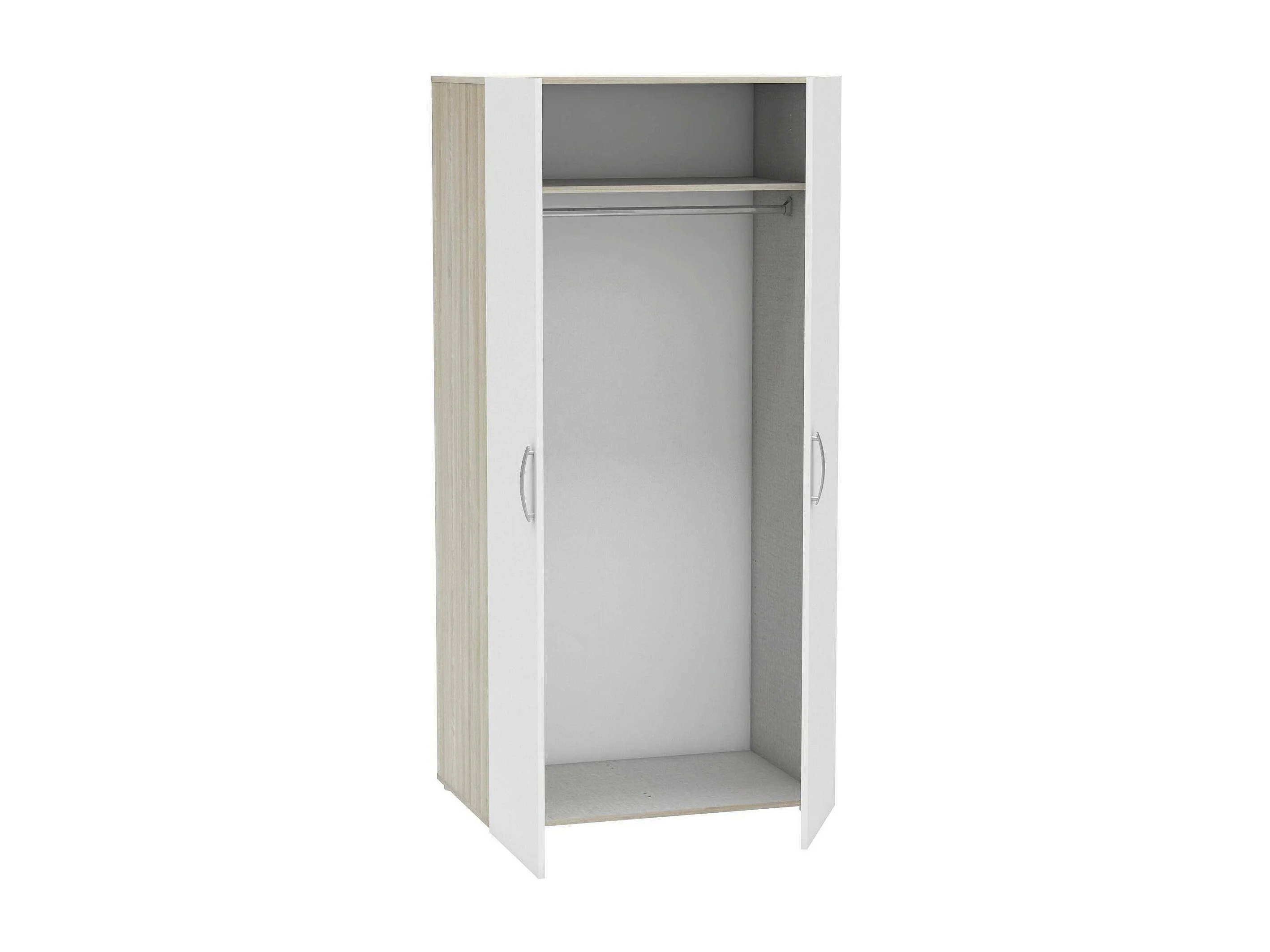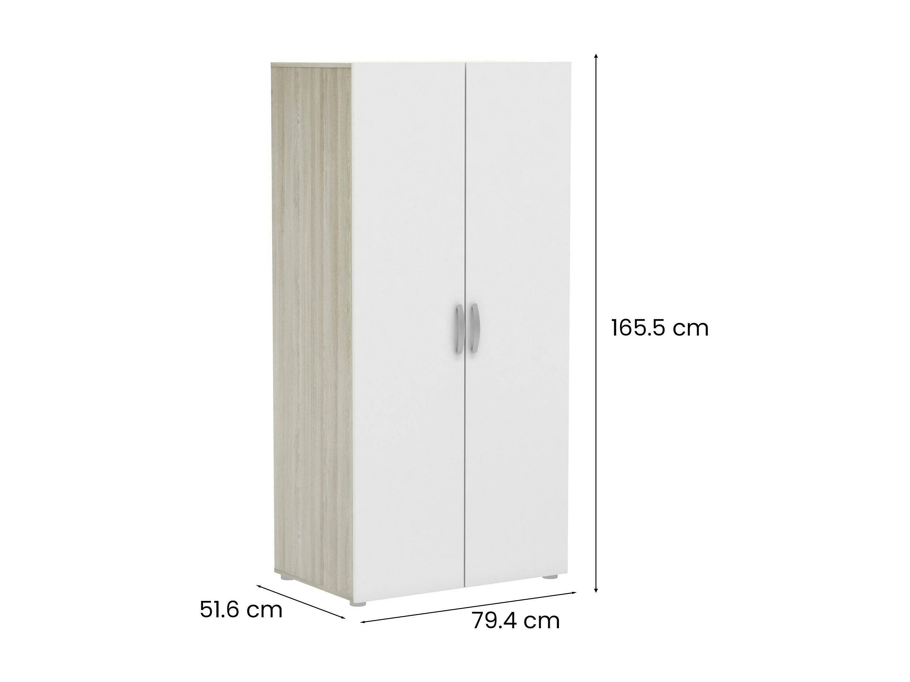 Garde-robe 2 portes Dfreita, Meubles de chambre, Penderie de plain-pied, Placard à vêtements, 79x52 h166 cm, Chêne clair et Blanc mat