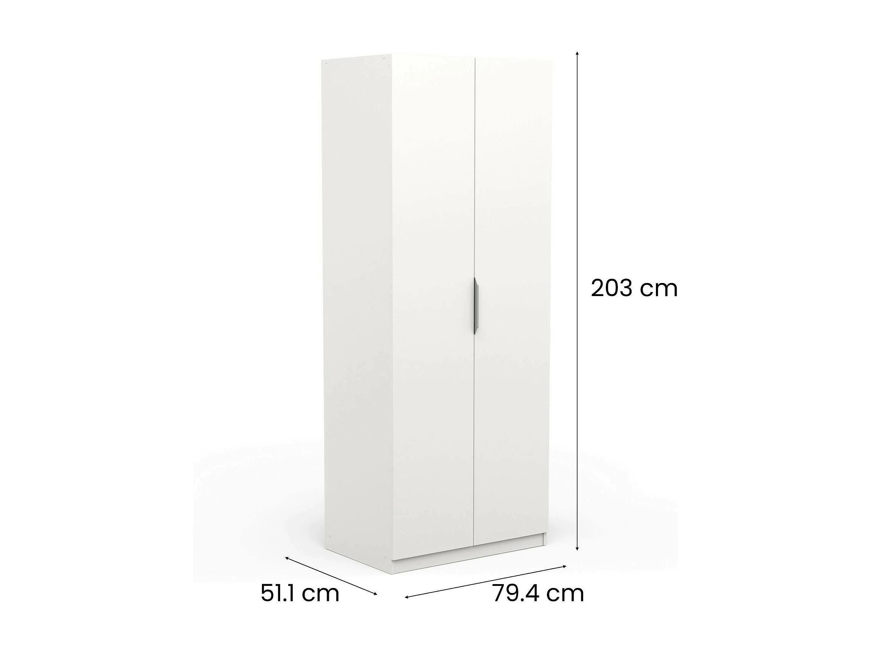 Garde-robe 2 portes Djakobsso, Meubles de chambre, Penderie de plain-pied, Placard à vêtements, 79x51 h203 cm, Blanc mat