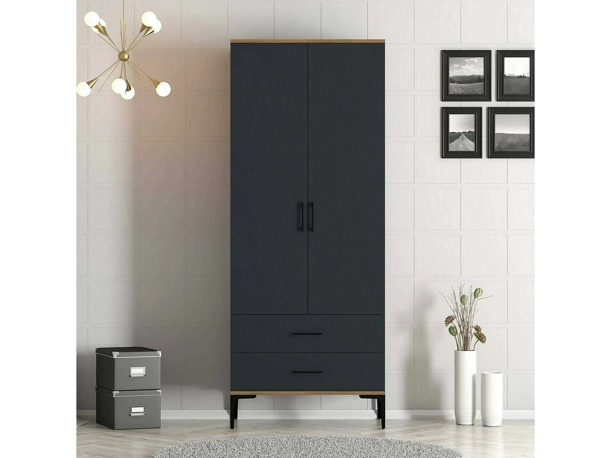 Garde-robe 2 portes Dpan, Meubles de chambre, Penderie de plain-pied, Placard à vêtements, 80x201h48 cm, Noyer et Anthracite
