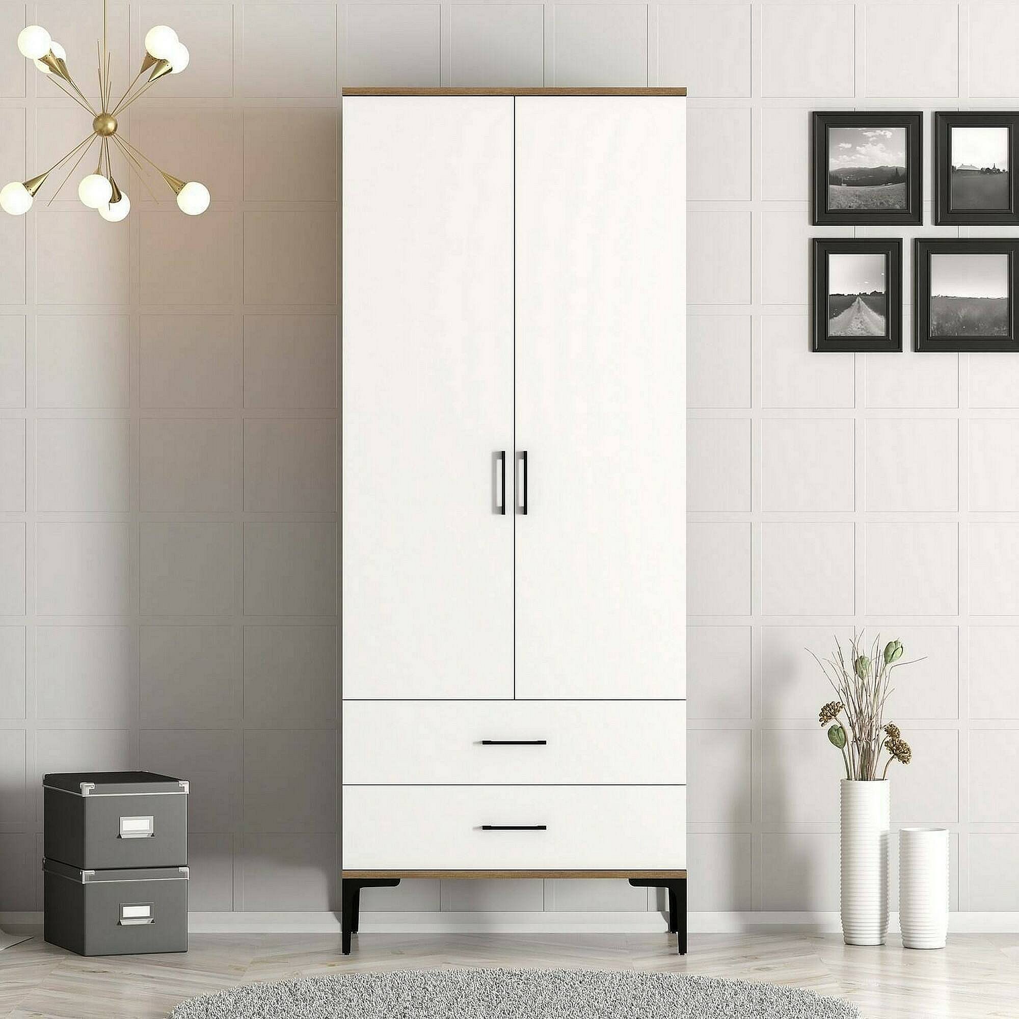 Garde-robe 2 portes Dpagliuc, Meubles de chambre, Penderie de plain-pied, Placard à vêtements, 80x201h48 cm, Noyer et Blanc