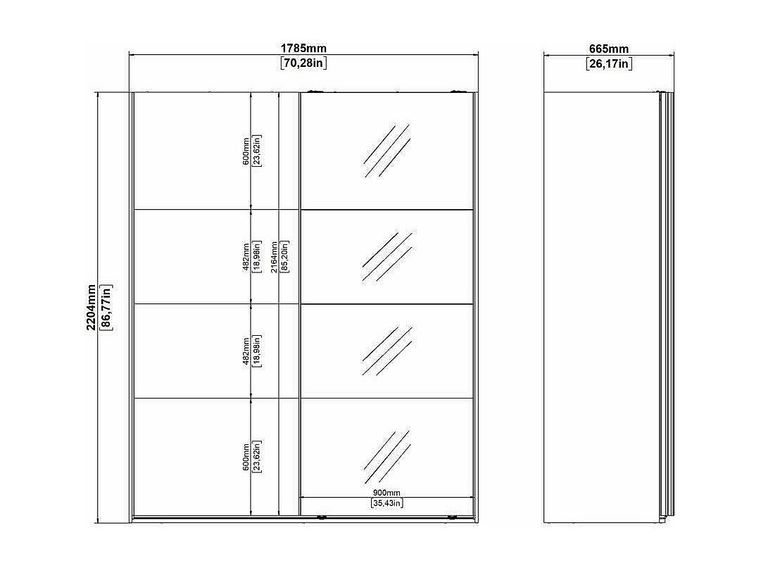 Garde-robe 2 portes Dprovede, Meubles de chambre, Penderie de plain-pied, Placard à vêtements, 179x65 h220 cm, Blanc et Transparent