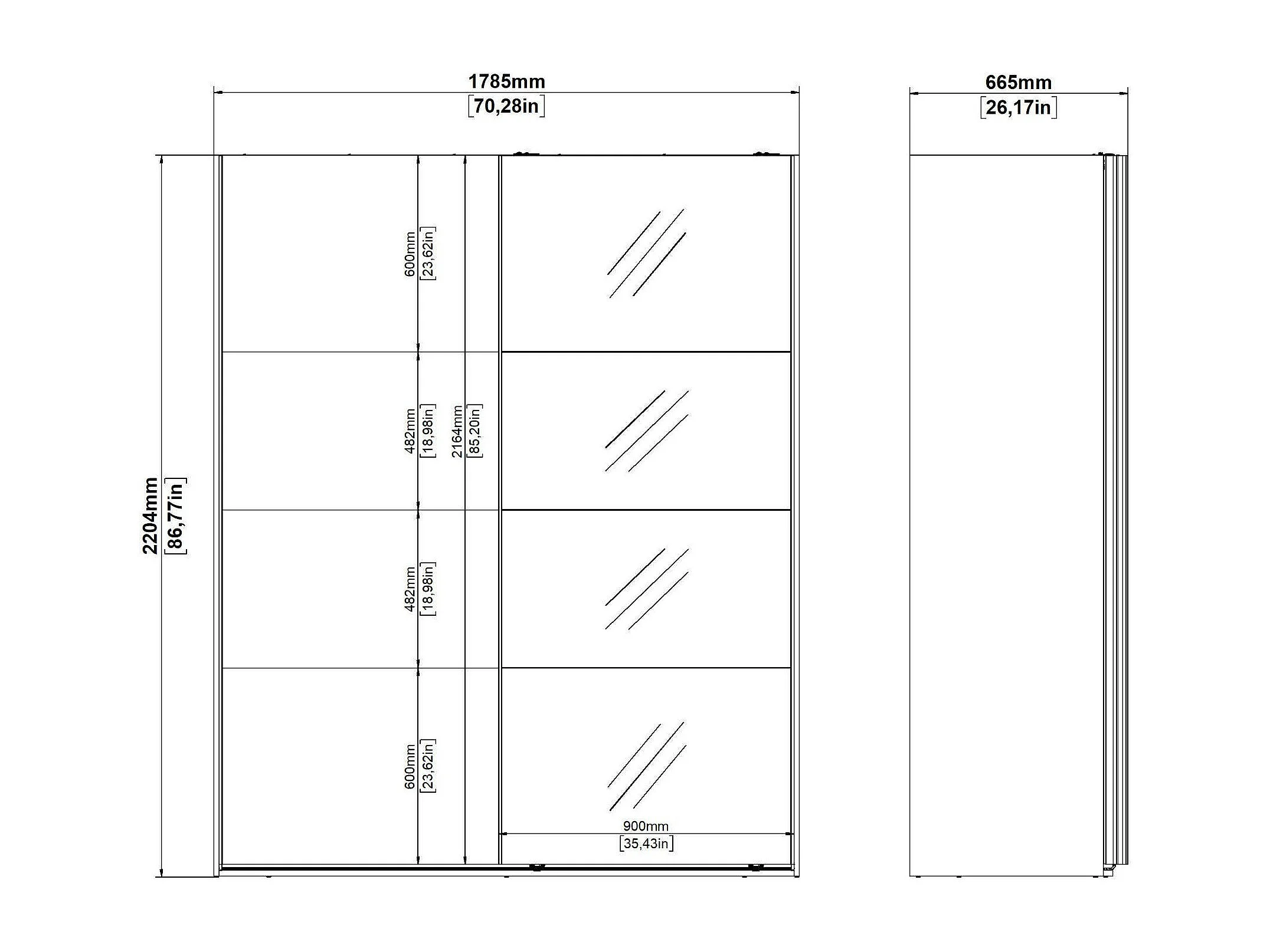 Garde-robe 2 portes Dprovede, Meubles de chambre, Penderie de plain-pied, Placard à vêtements, 179x65 h220 cm, Gris et Transparent