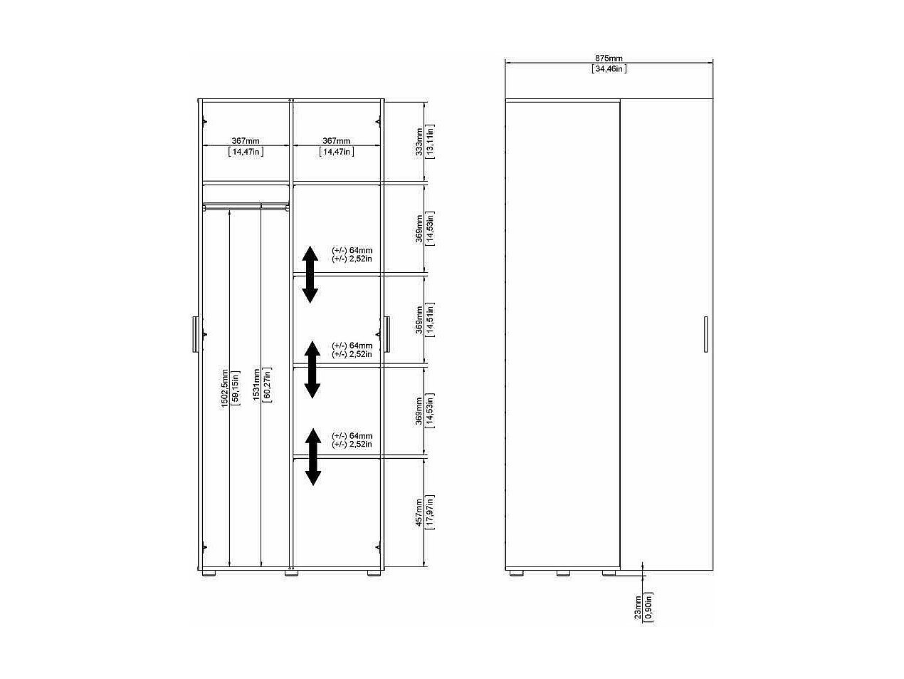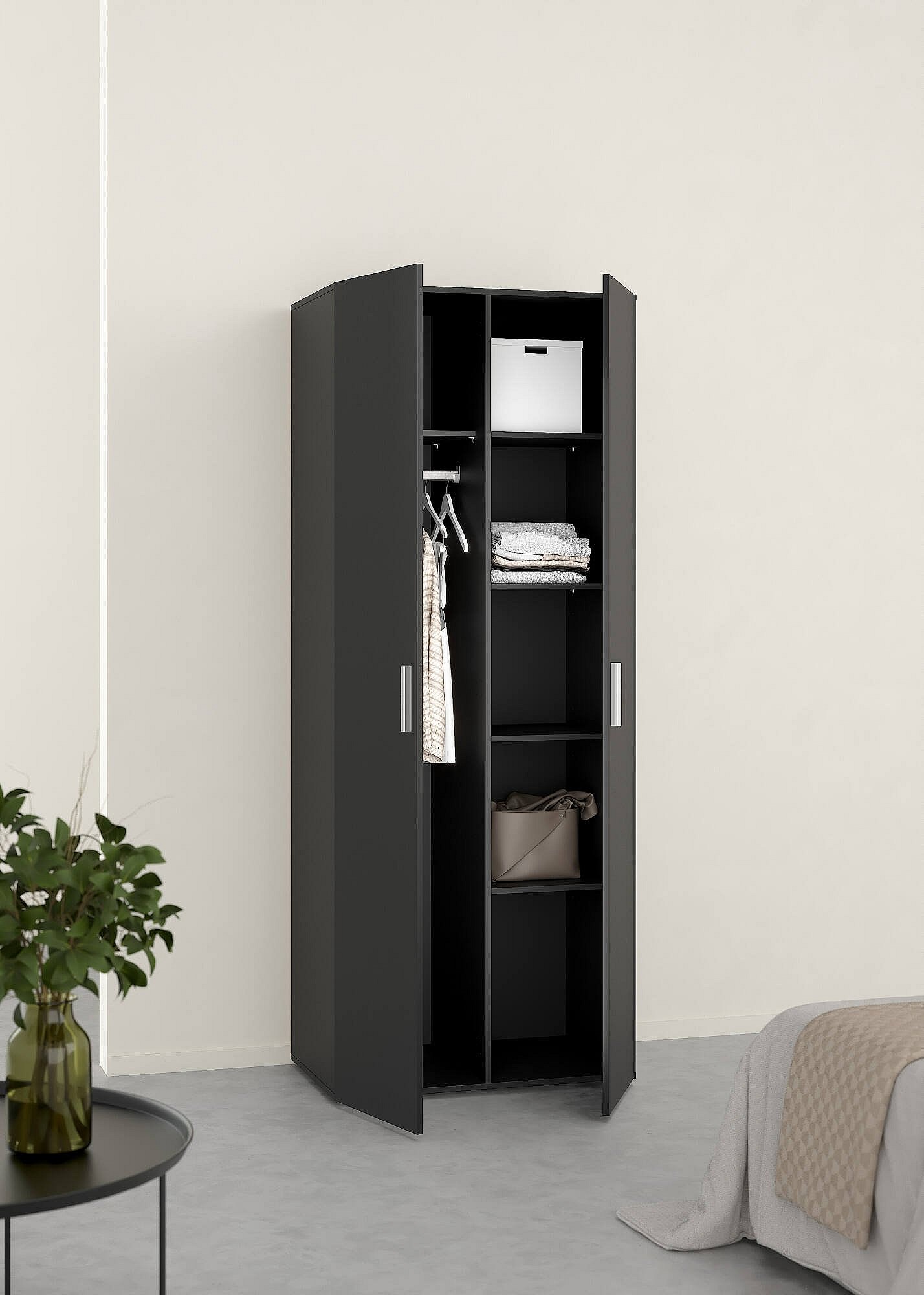 Garde-robe 2 portes Dscapol, Meubles de chambre, Penderie de plain-pied, Placard à vêtements, 96x63 h200 cm, Noir