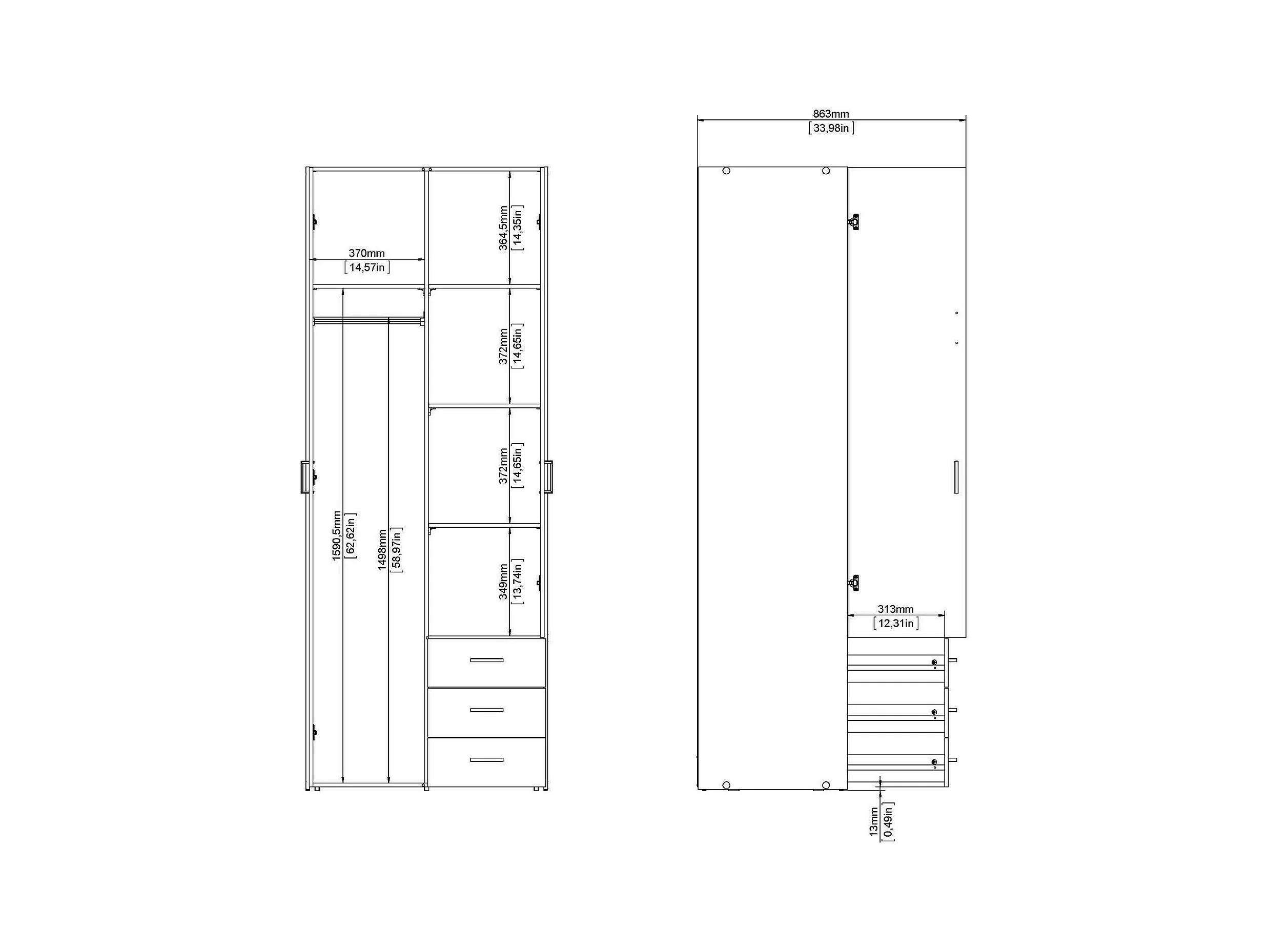 Armoire Burbank, Armoire de chambre avec 2 portes et 2 tiroirs, Armoire avec tringle à vêtements, 82x52h180 cm, Blanc et Chêne