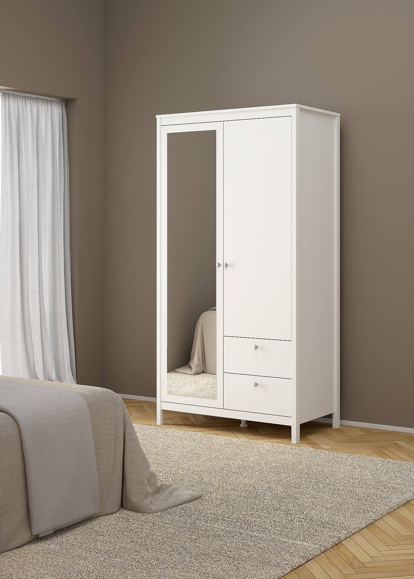 Garde-robe 2 portes Dscarlat, Meubles de chambre, Penderie de plain-pied, Placard à vêtements, 102x58 h199 cm, Blanc