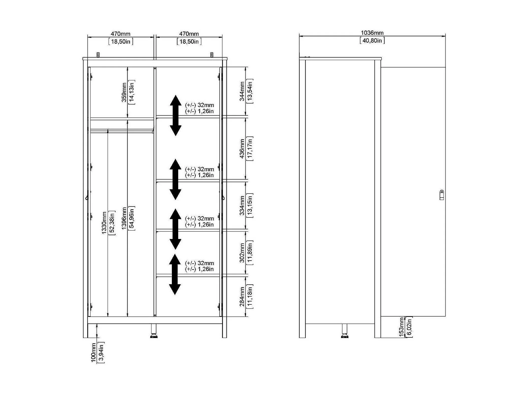 Garde-robe 2 portes Dsciacc, Meubles de chambre, Penderie de plain-pied, Placard à vêtements, 102x58 h199 cm, Blanc