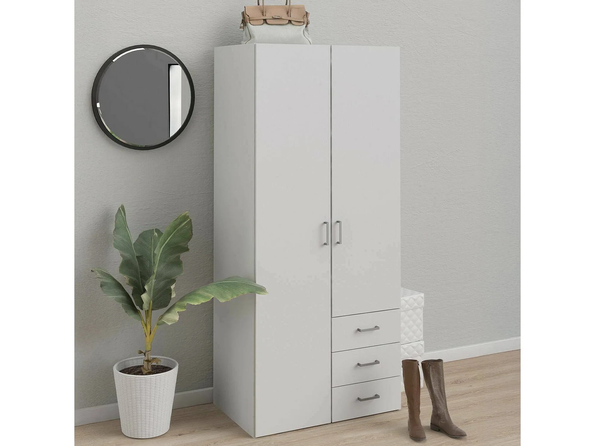 Garde-robe 2 portes Dscurt, Meubles de chambre, Penderie de plain-pied, Placard à vêtements, 77x49 h175 cm, Blanc