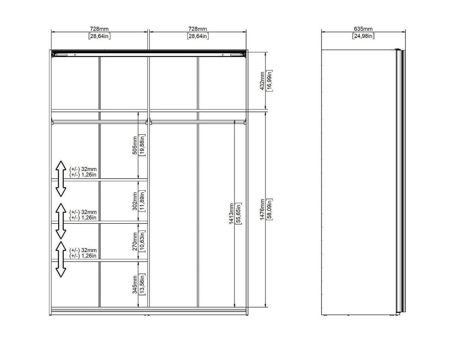 Garde-robe 2 portes Dspur, Meubles de chambre, Penderie de plain-pied, Placard à vêtements, 150x61 h200 cm, Blanc et Chêne clair