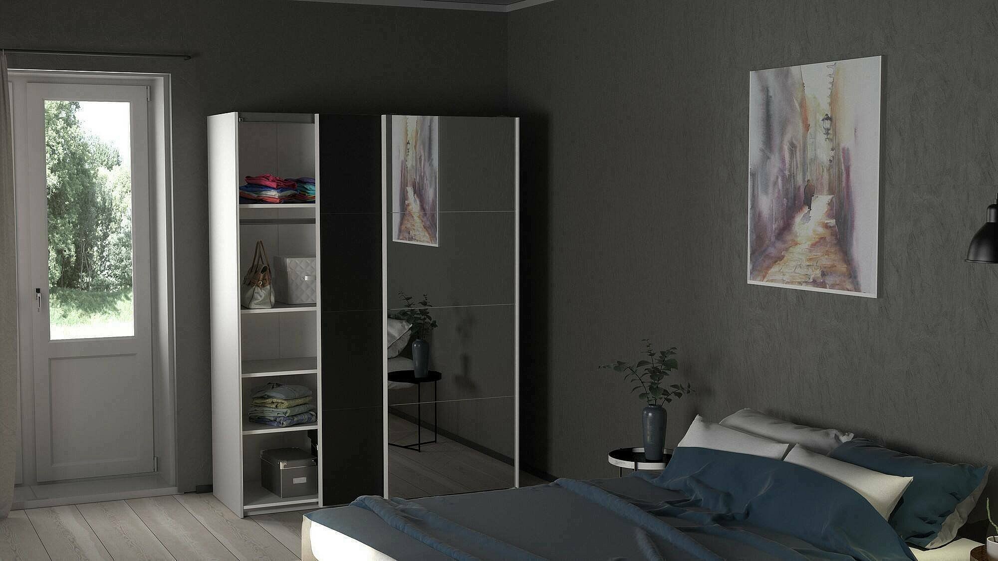 Garde-robe 2 portes Dspur, Meubles de chambre, Penderie de plain-pied, Placard à vêtements, 150x61 h200 cm, Blanc et Noir
