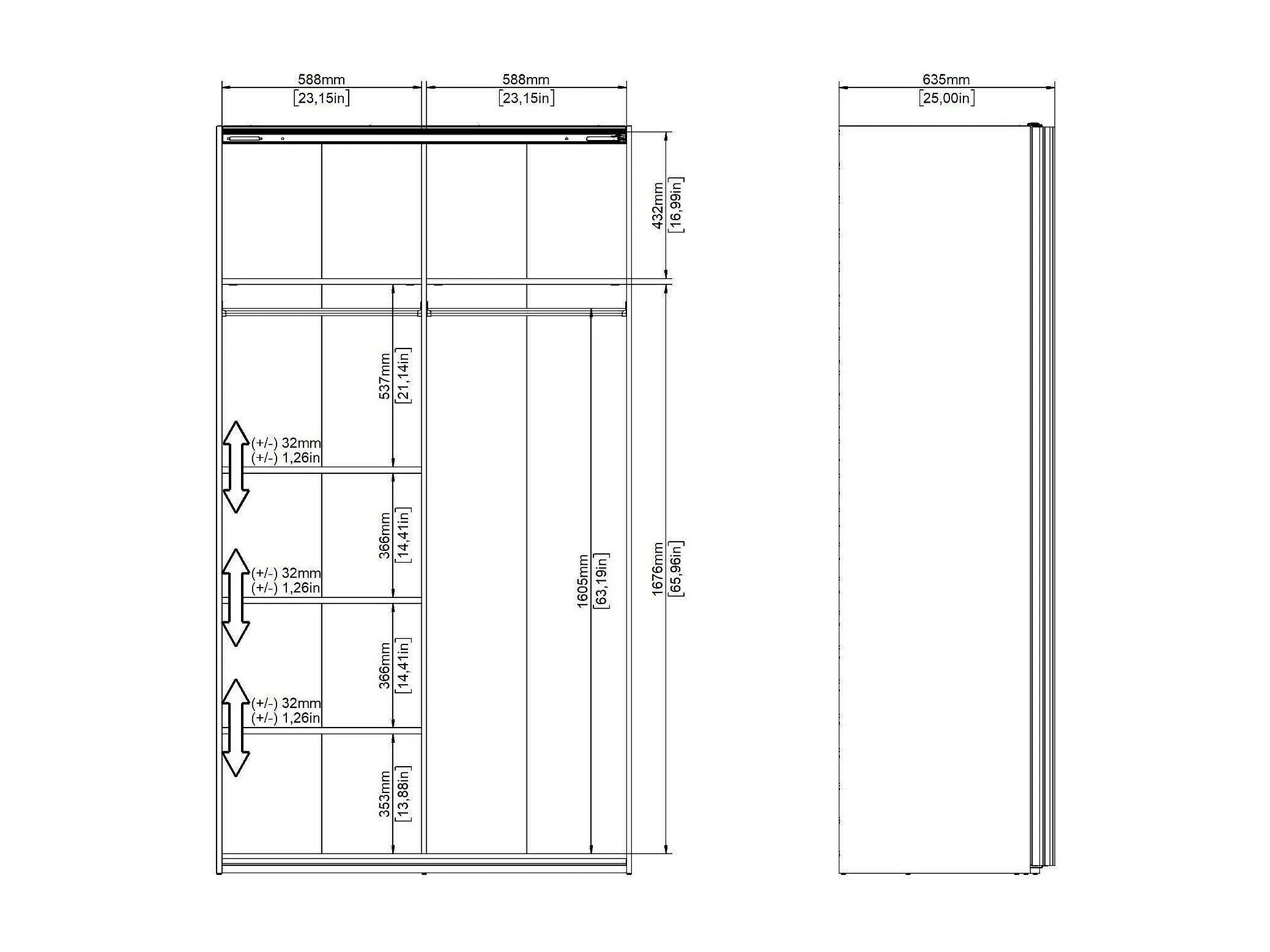Garde-robe 2 portes Dstopp, Meubles de chambre, Penderie de plain-pied, Placard à vêtements, 122x62 h220 cm, Blanc