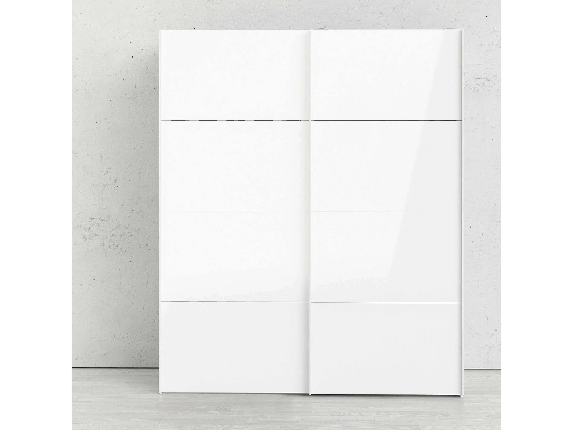 Garde-robe 2 portes London, Meubles de chambre, Penderie de plain-pied, Placard à vêtements, 182x62 h220 cm, Blanc brillant