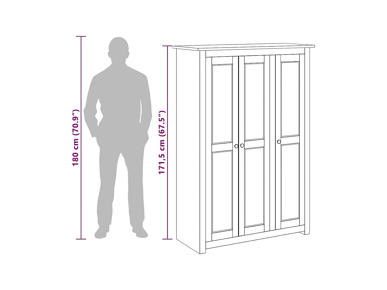 Garde-robe 3 portes Blanc 118x50x171,5cm Pin Assortiment Panama