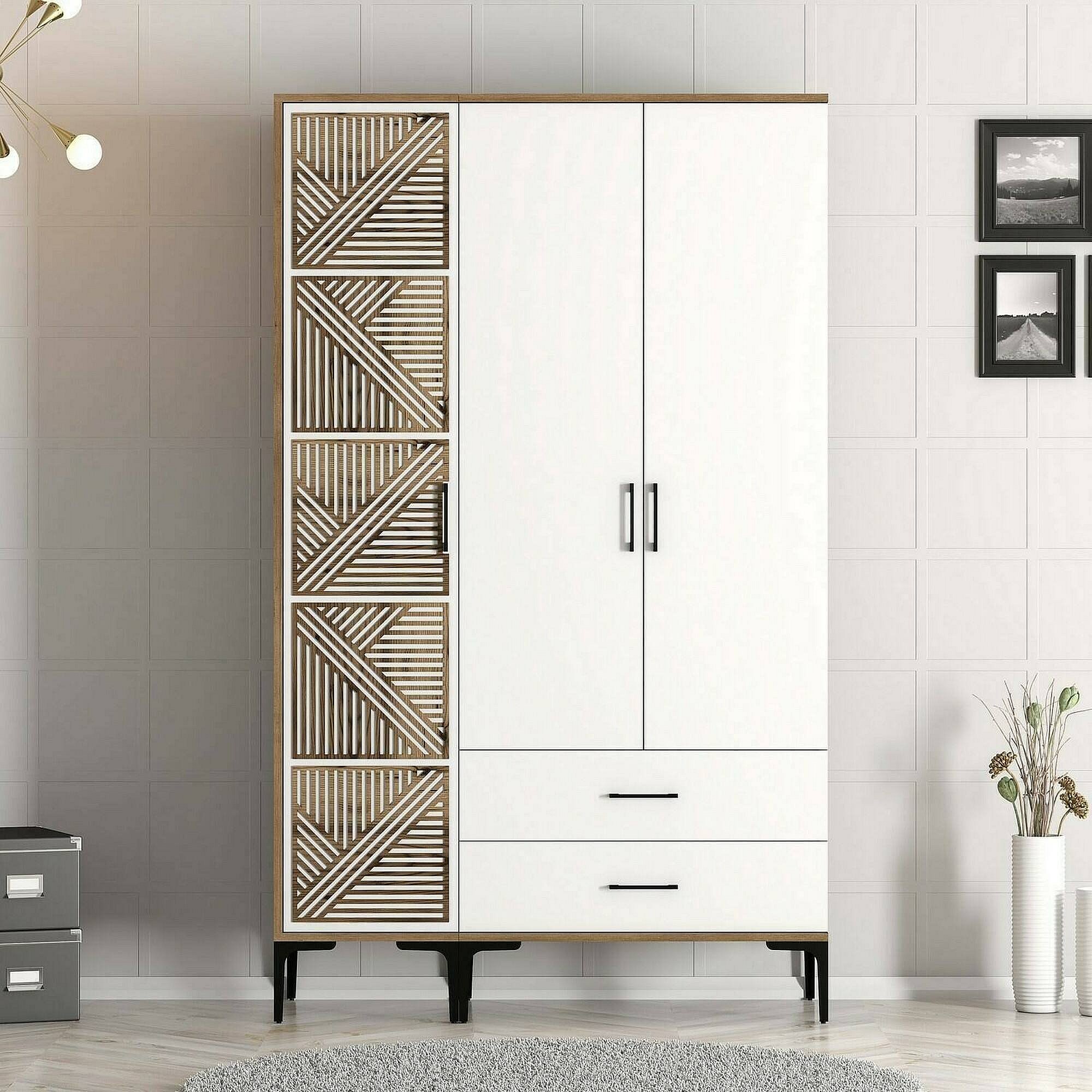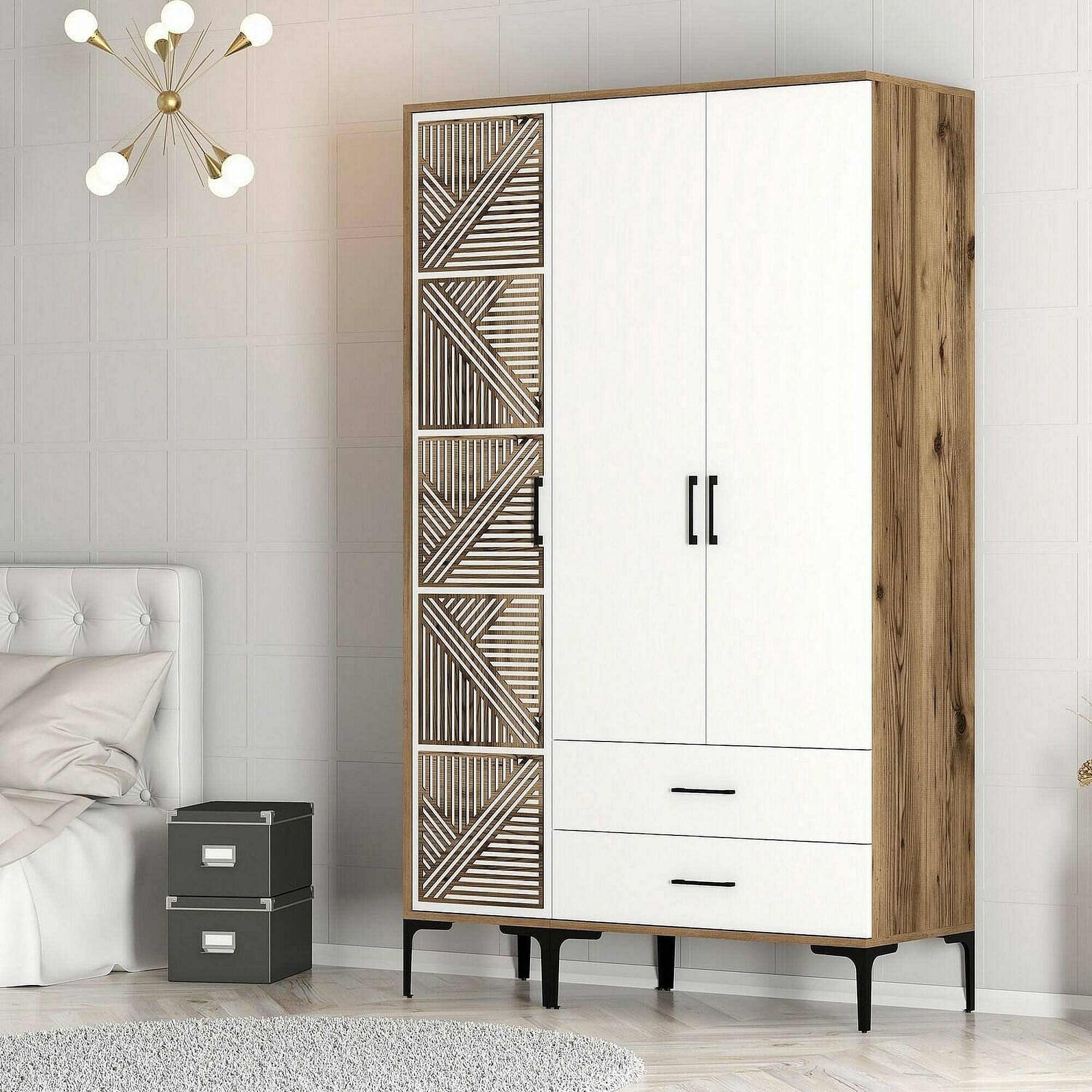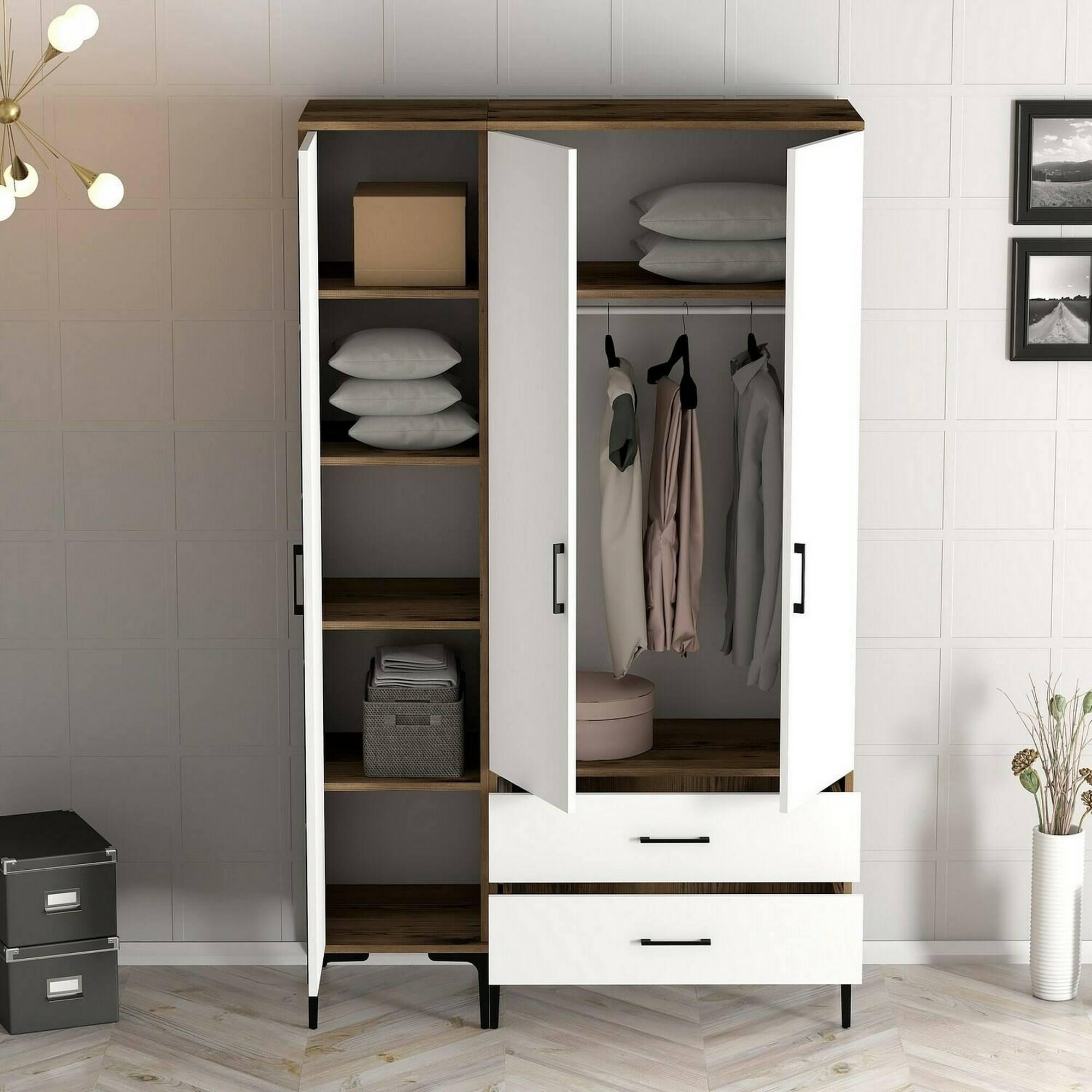 Garde-robe 3 portes Dgalbiat, Meubles de chambre, Penderie de plain-pied, Placard à vêtements, 120x48h201 cm, Noyer et Blanc