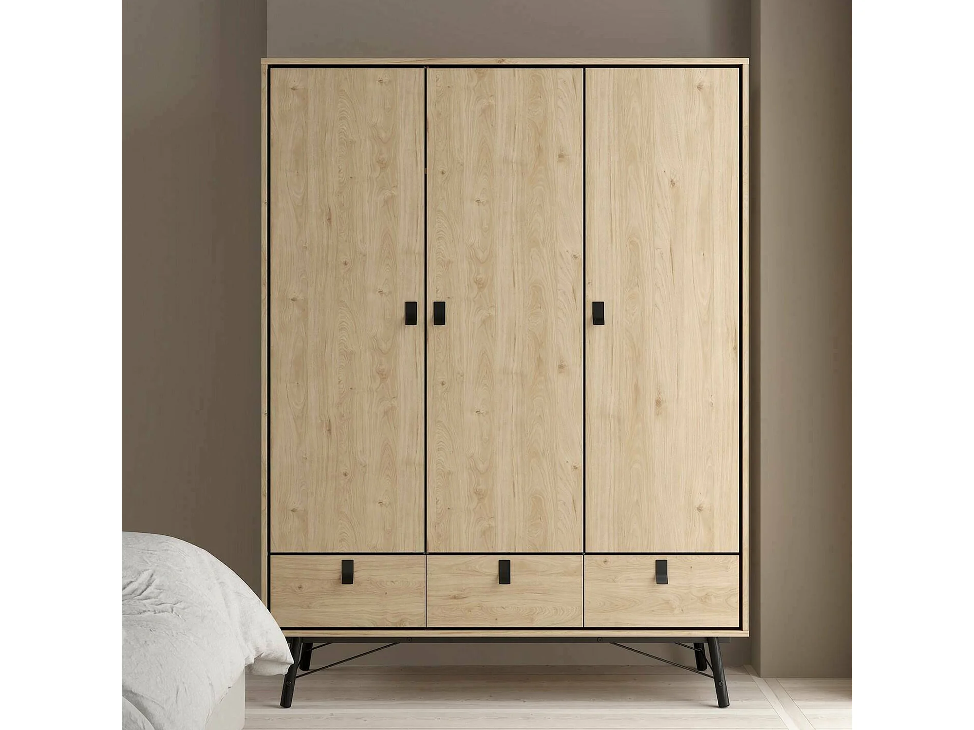 Garde-robe 3 portes Dsalvion, Meubles de chambre, Penderie de plain-pied, Placard à vêtements, 150x60 h200 cm, Chêne clair