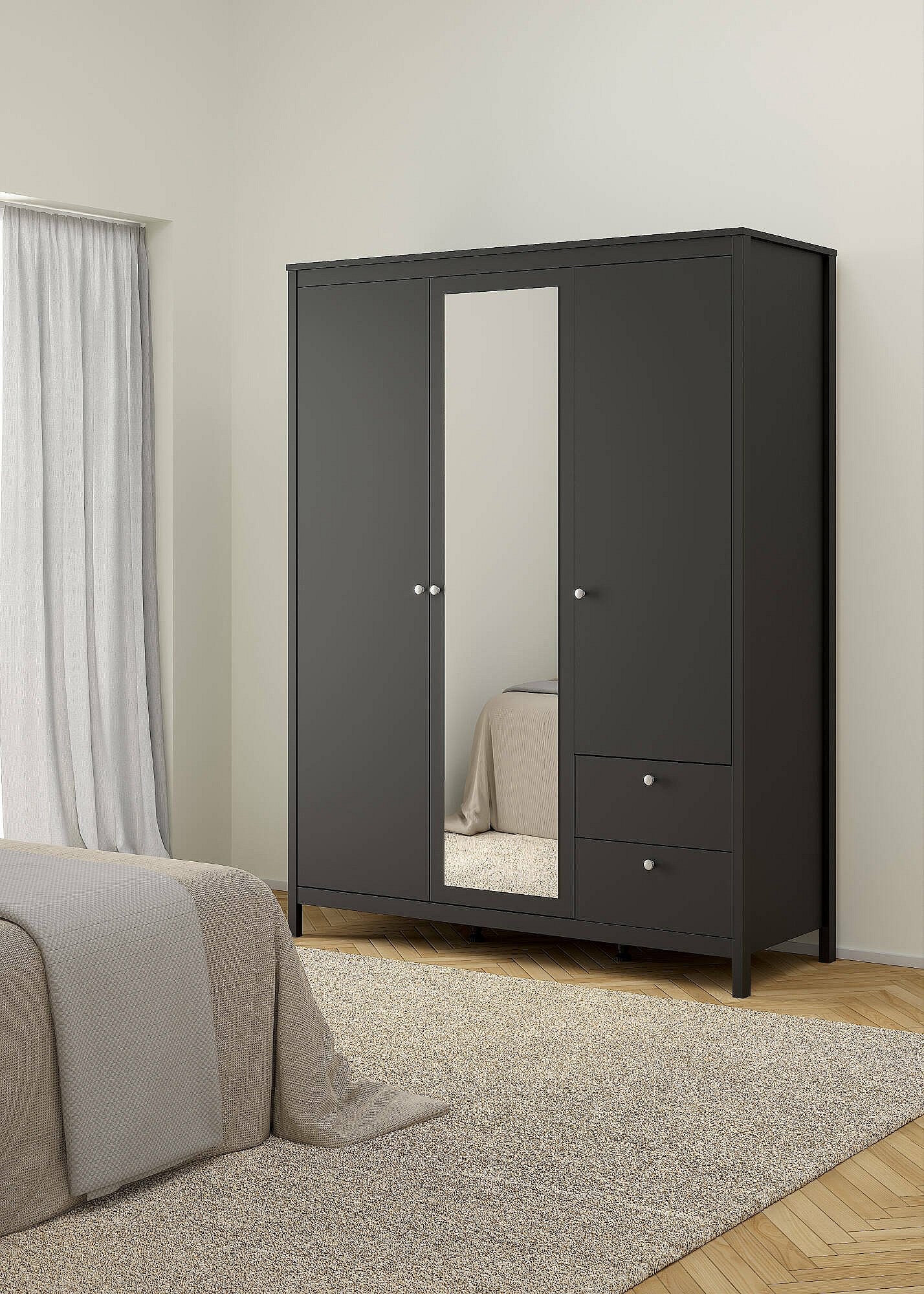 Garde-robe 3 portes Drivier, Meubles de chambre, Penderie de plain-pied, Placard à vêtements, 118x50 h201 cm, Noir