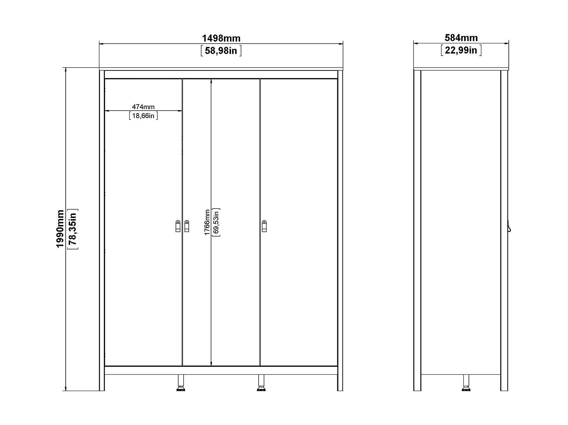 Garde-robe 3 portes Dsemiol, Meubles de chambre, Penderie de plain-pied, Placard à vêtements, 150x58 h199 cm, Blanc