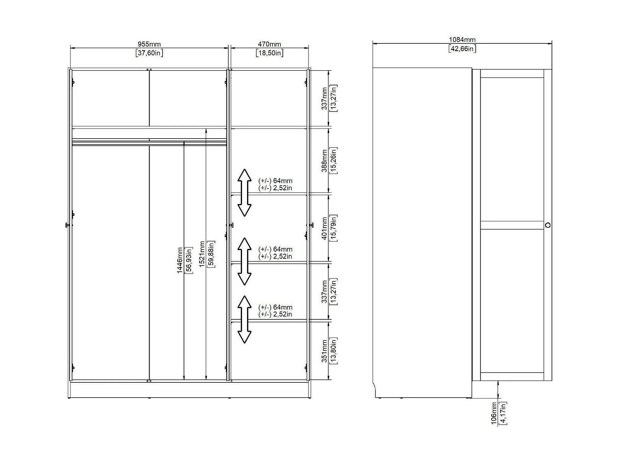 Garde-robe 3 portes Dsens, Meubles de chambre, Penderie de plain-pied, Placard à vêtements, 147x62 h200 cm, Blanc