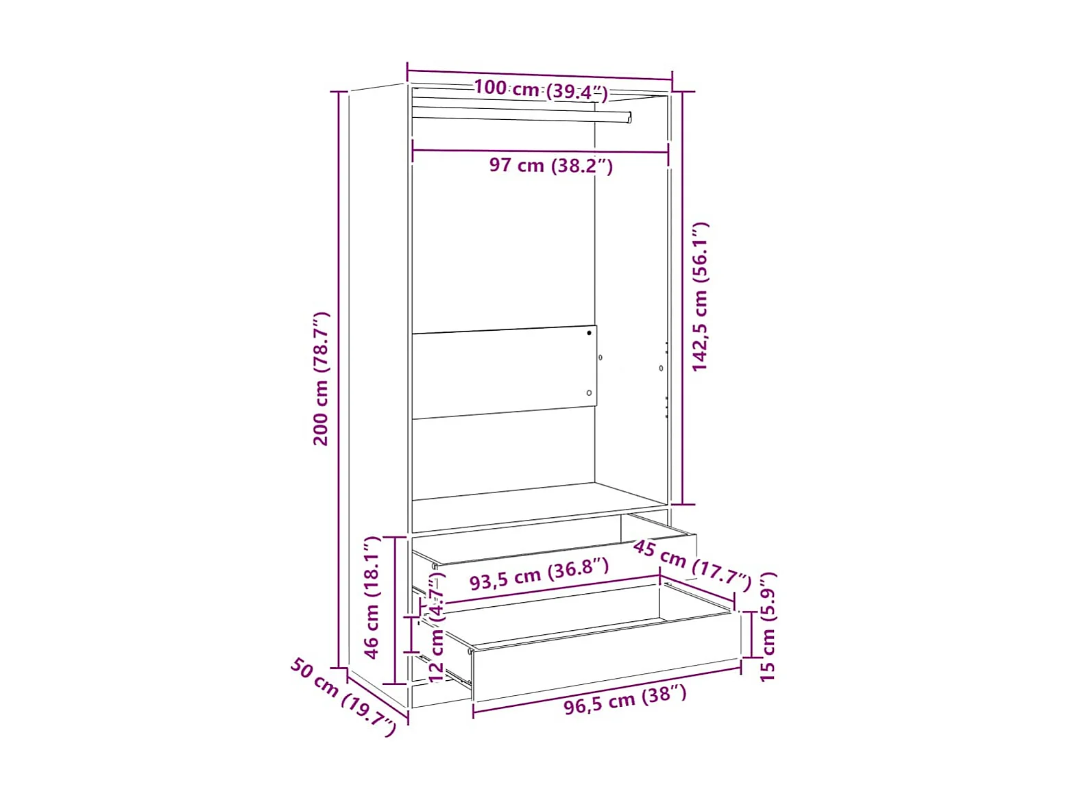 Garde-robe Blanc 100x50x200 cm Bois d'ingénierie