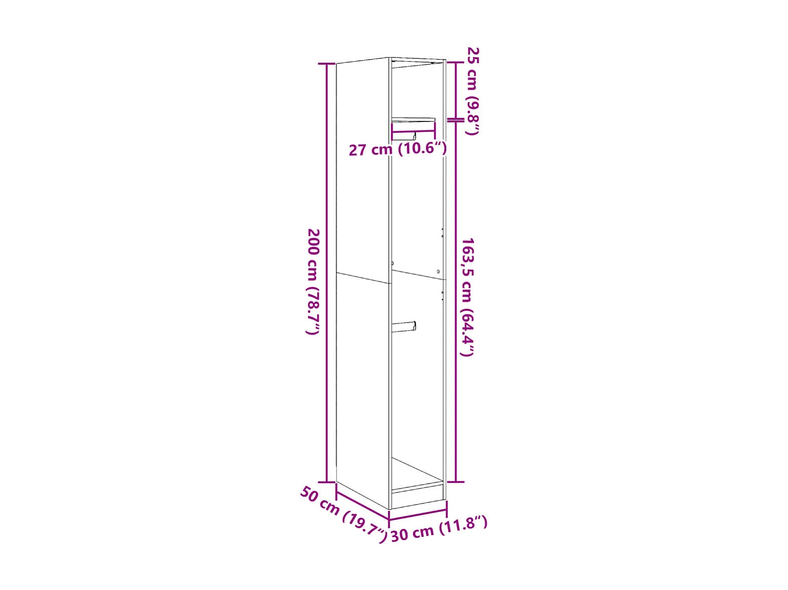 Garde-robe chêne artisanal 30x50x200 cm bois d'ingénierie