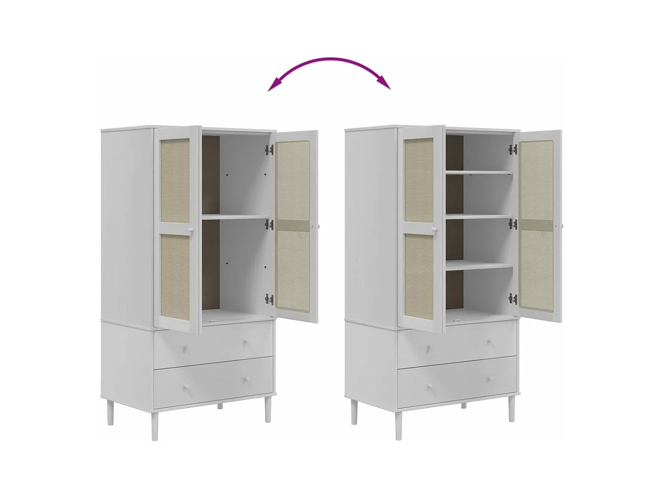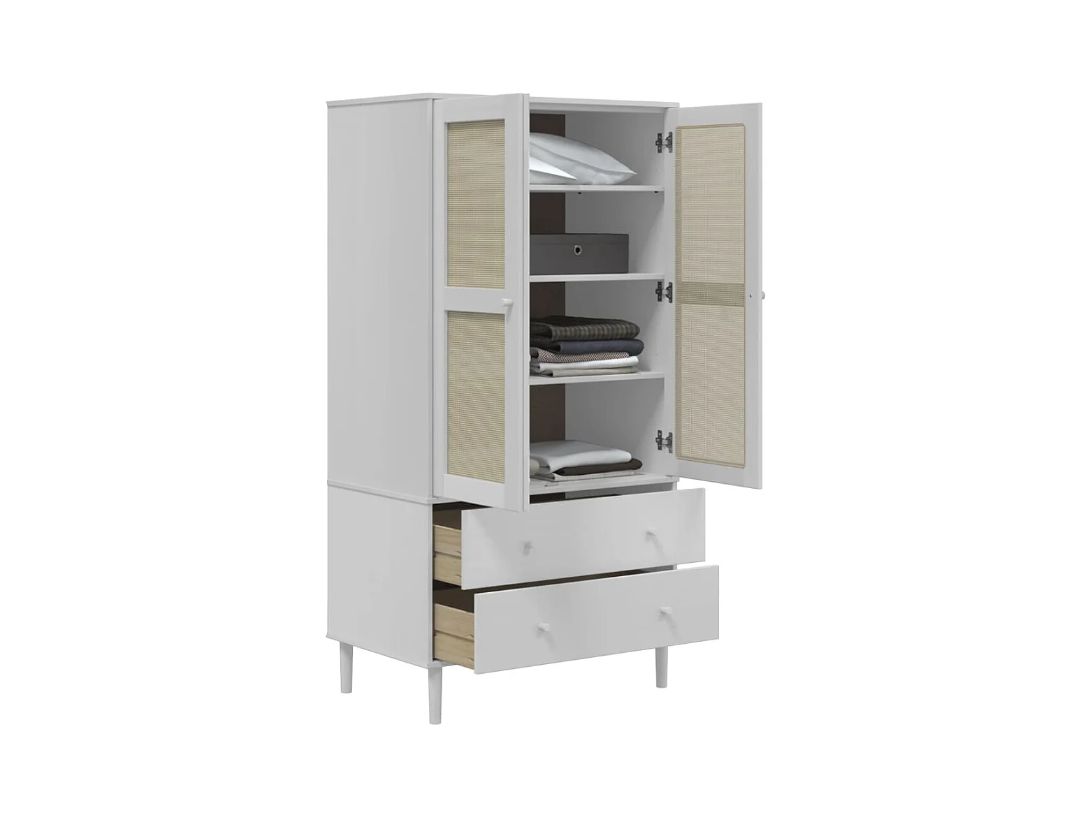 Garde-robe SENJA aspect rotin blanc 90x55x175cm bois massif pin