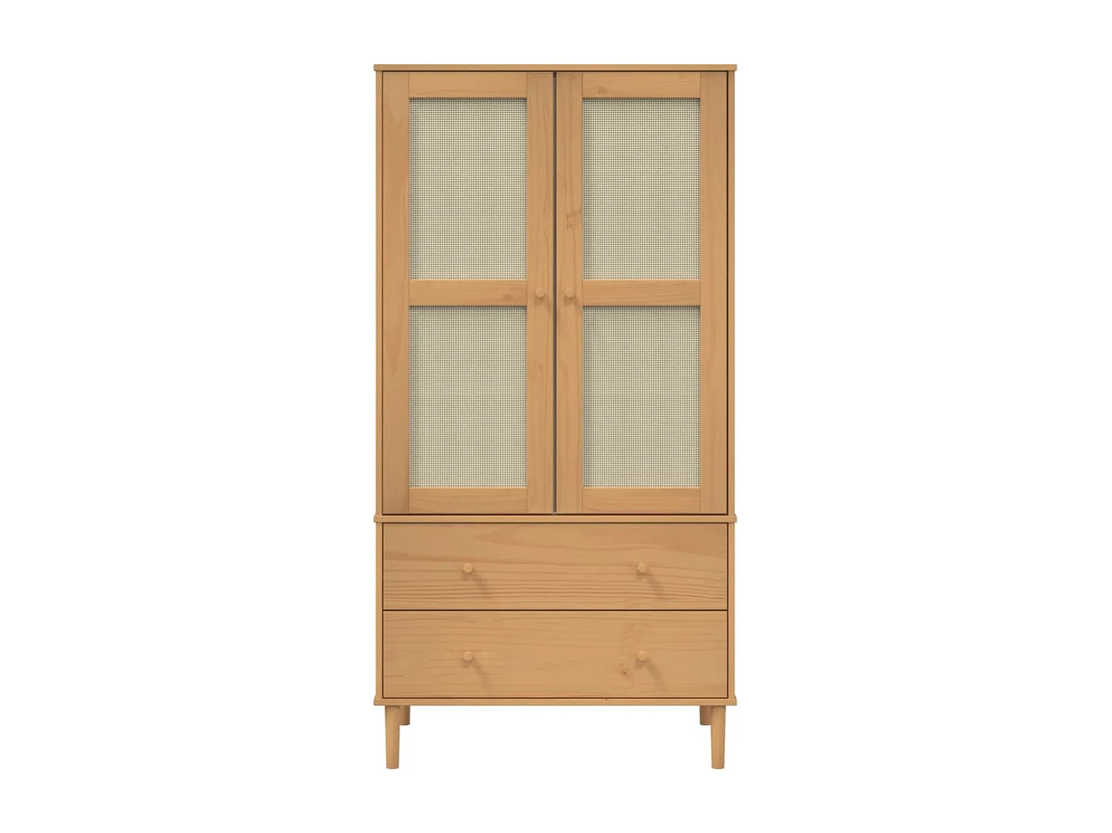 Garde-robe SENJA aspect rotin marron bois massif de pin