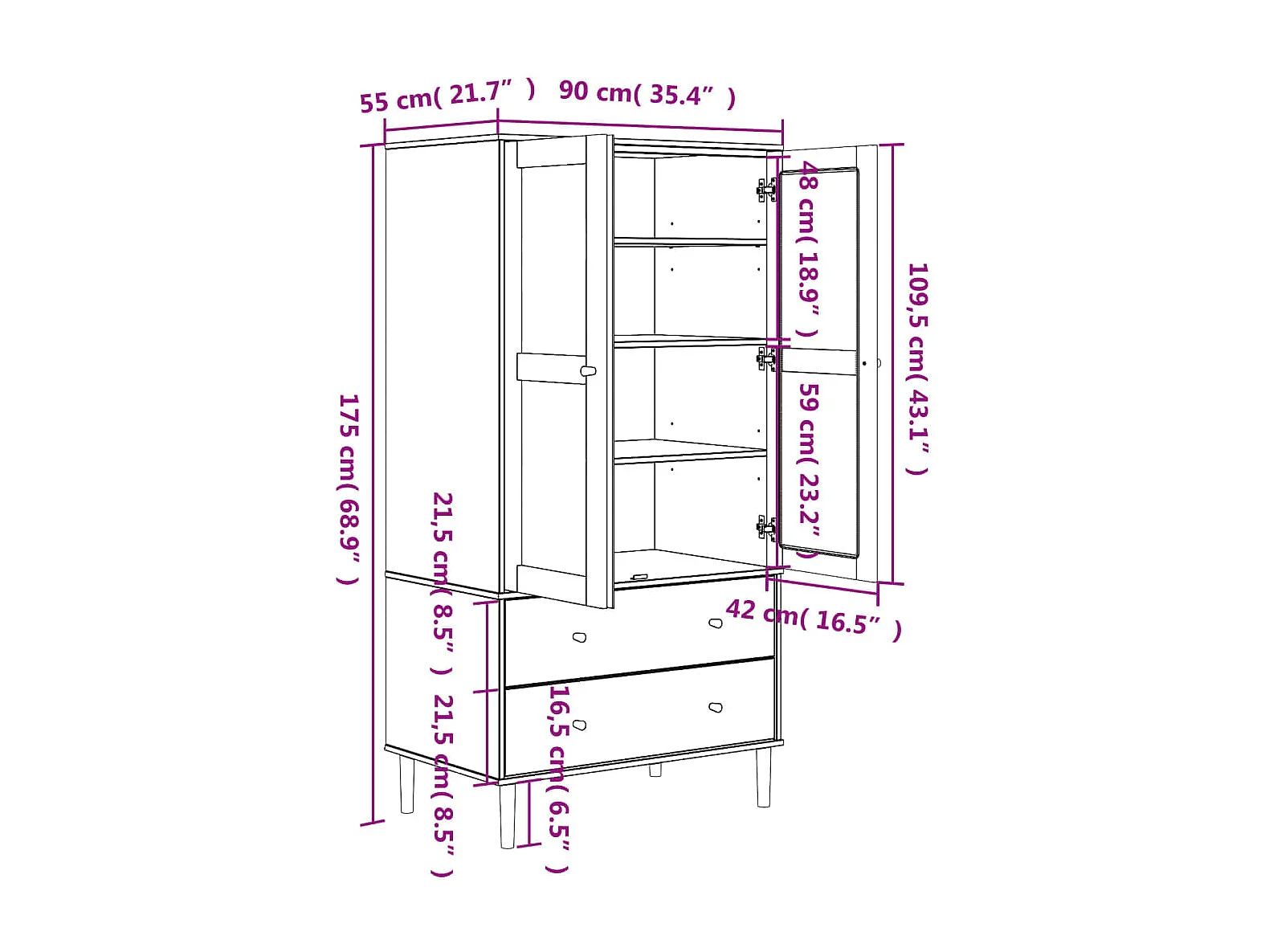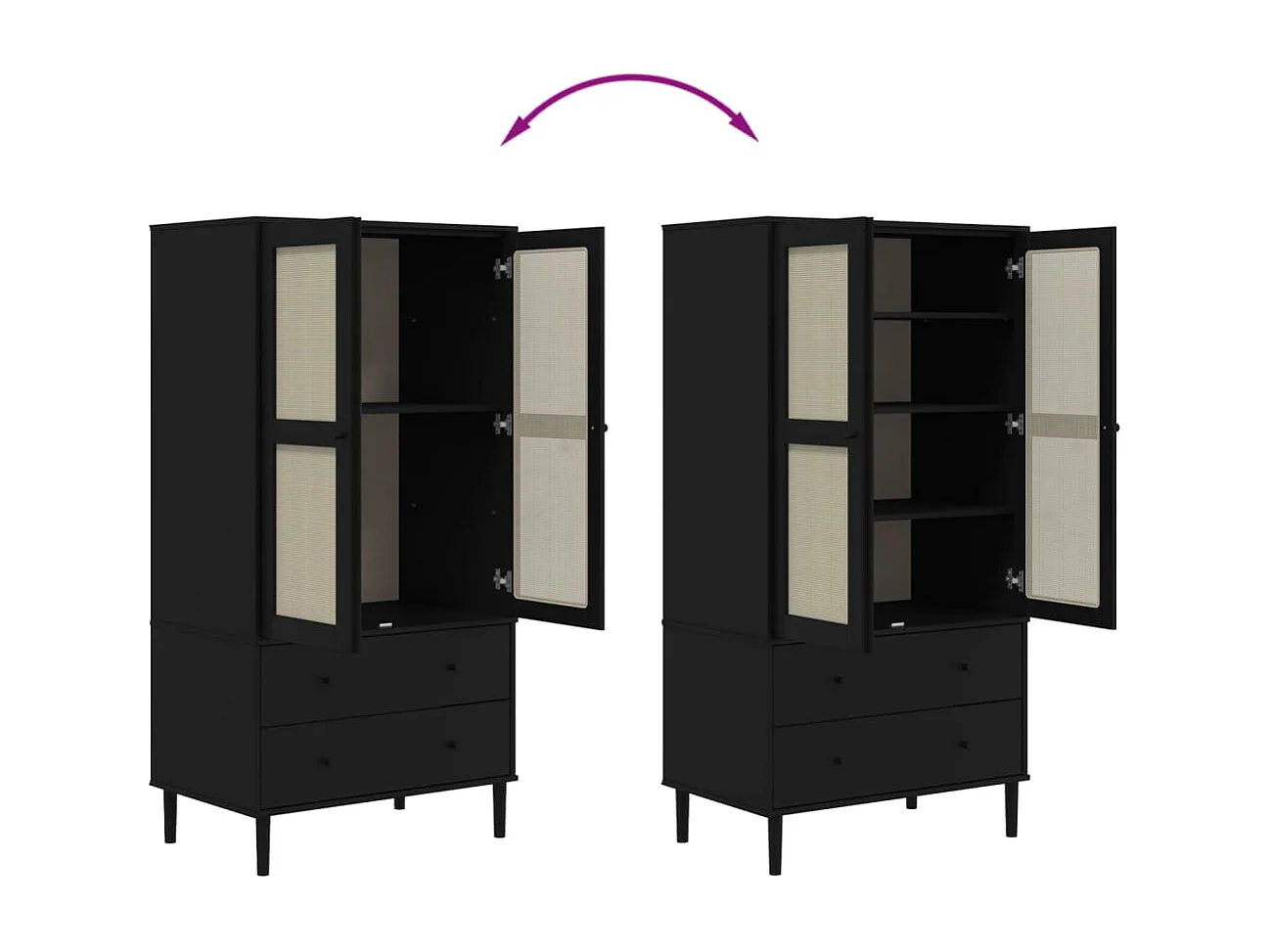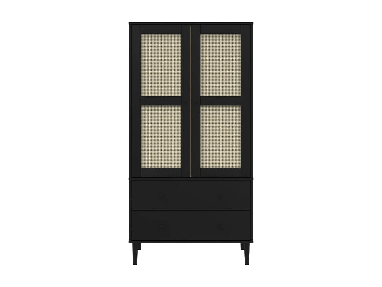 Garde-robe SENJA aspect rotin noir 90x55x175 cm bois massif pin