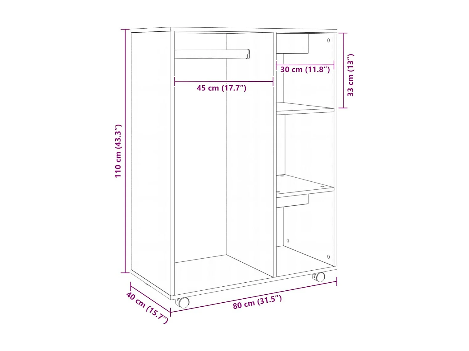 Garde-robe gris béton 70x32,5x35 cm bois d'ingénierie
