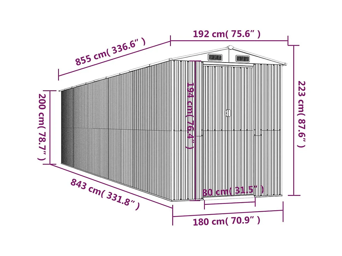 Garden Furniture - Abri de jardin Anthracite 192x855x223 cm Acier galvanisé