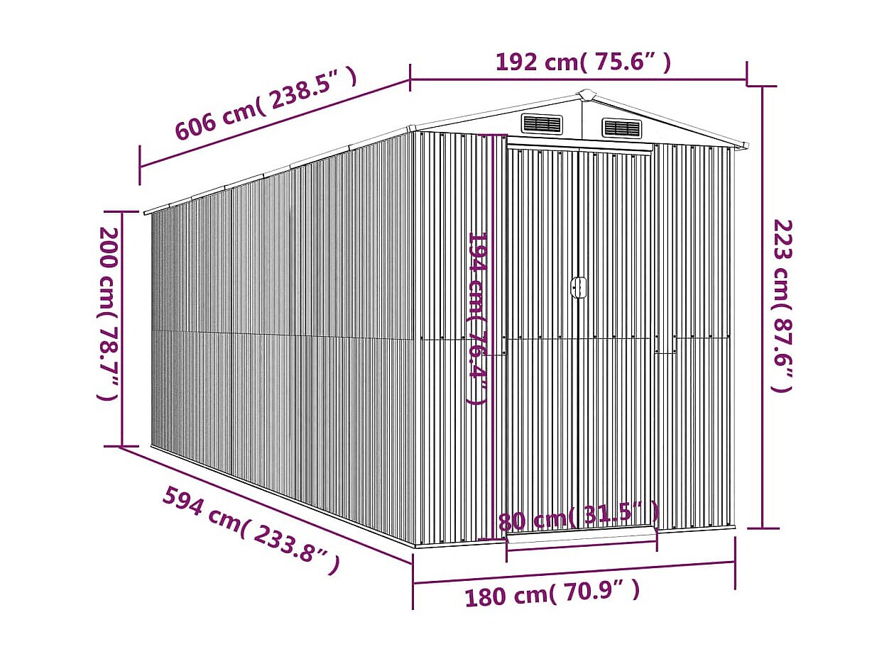 Garden Furniture - Abri de jardin Gris clair 192x606x223 cm Acier galvanisé