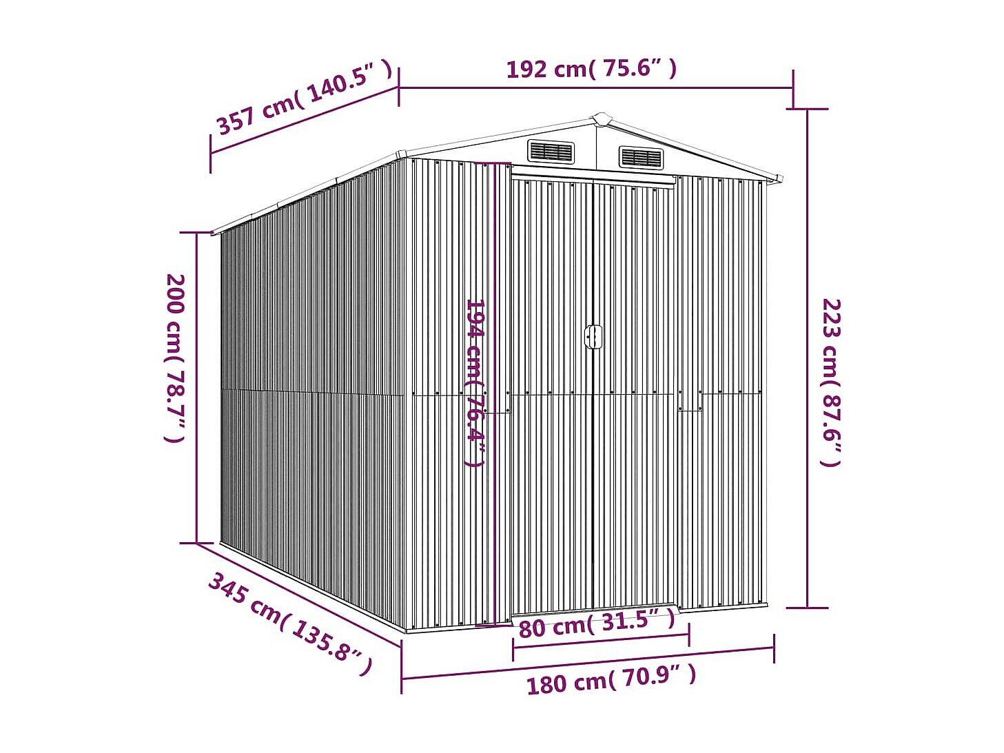 Garden Furniture - Abri de jardin Marron clair 192x357x223 cm Acier galvanisé