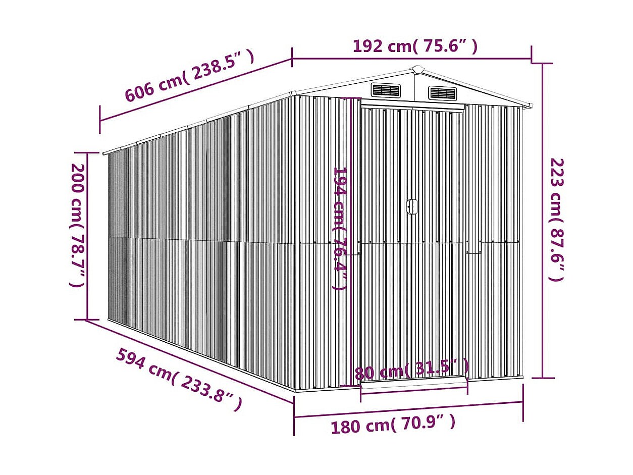 Garden Furniture - Abri de jardin Marron clair 192x606x223 cm Acier galvanisé