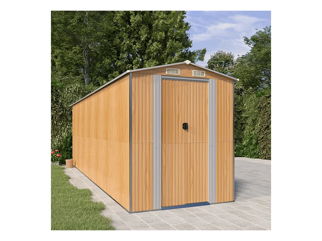 Garden Furniture - Abri de jardin Marron clair 192x357x223 cm Acier galvanisé