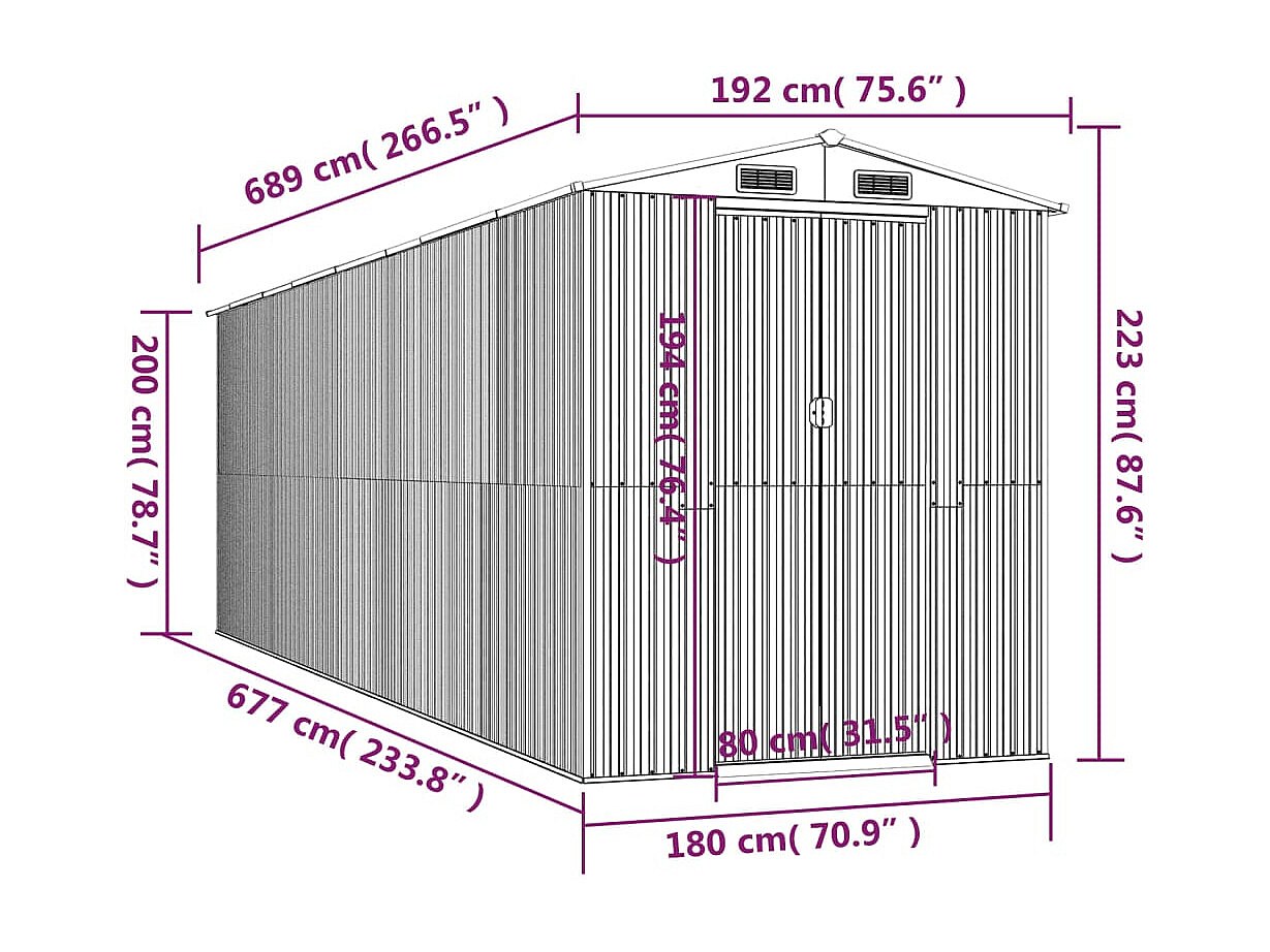 Garden Furniture - Abri de jardin Marron clair 192x689x223 cm Acier galvanisé