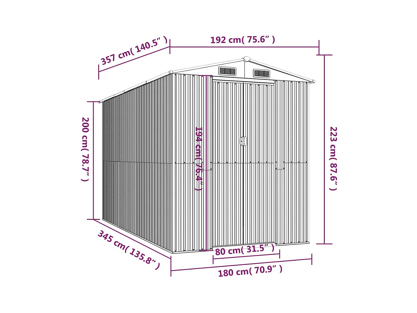 Garden Furniture - Abri de jardin Vert 192x357x223 cm Acier galvanisé