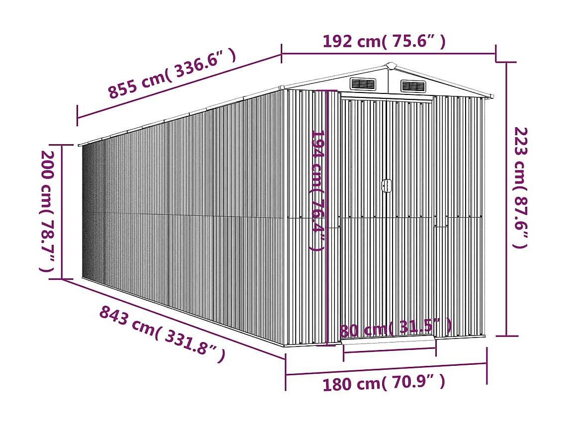 Garden Furniture - Abri de jardin Vert 192x855x223 cm Acier galvanisé