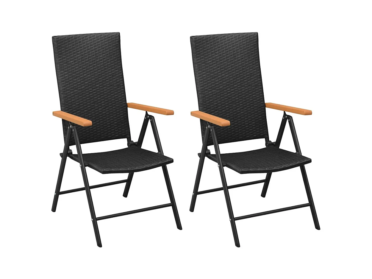 Ensemble table inclinable de terrasse 70 x 70 cm et 2 fauteuils noir