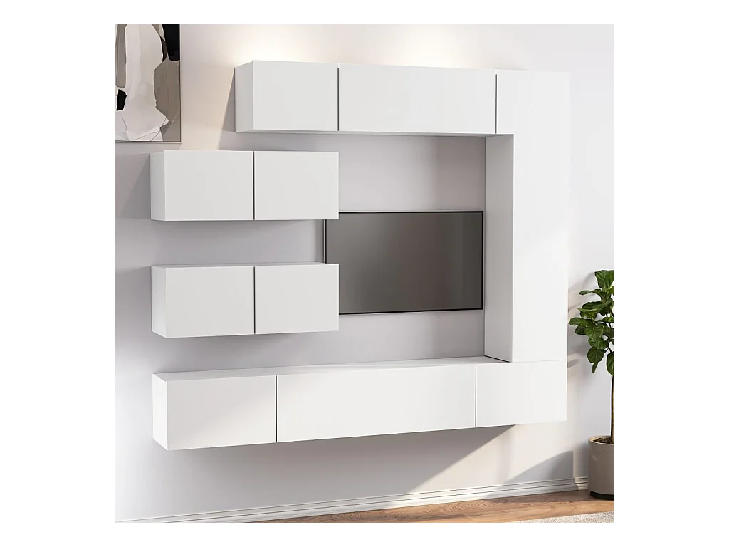 Garden Furniture - Ensemble de meubles TV 7 pcs Blanc Bois d'ingénierie