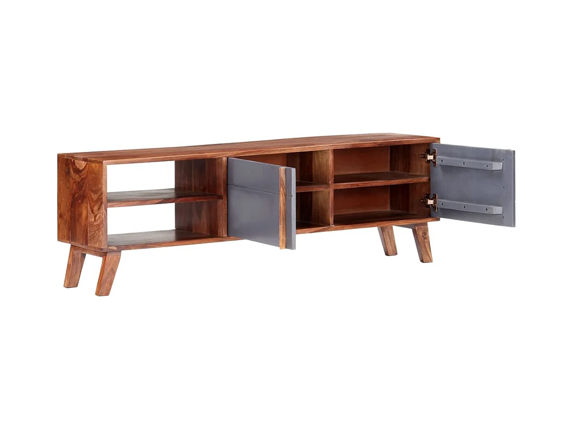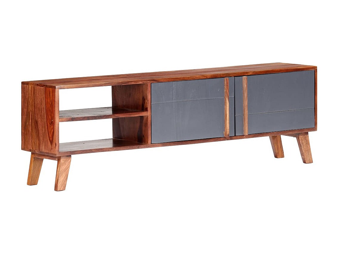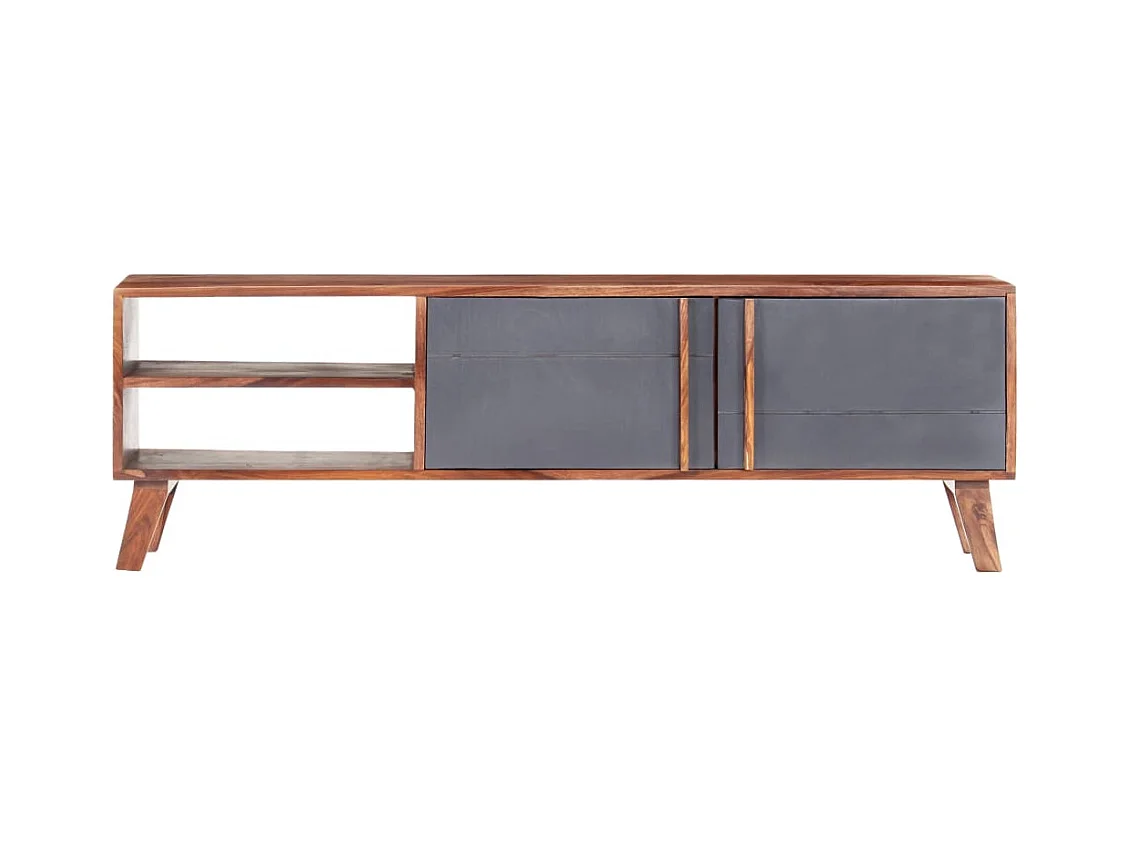 Garden Furniture - Meuble TV gris 140x30x45 cm bois solide