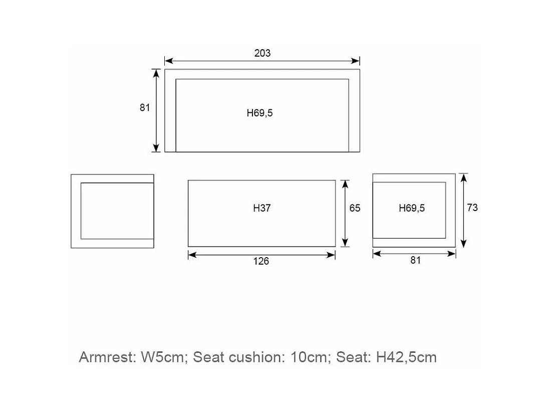 Salon complet de jardin Canapé 2 places et 2 fauteuils