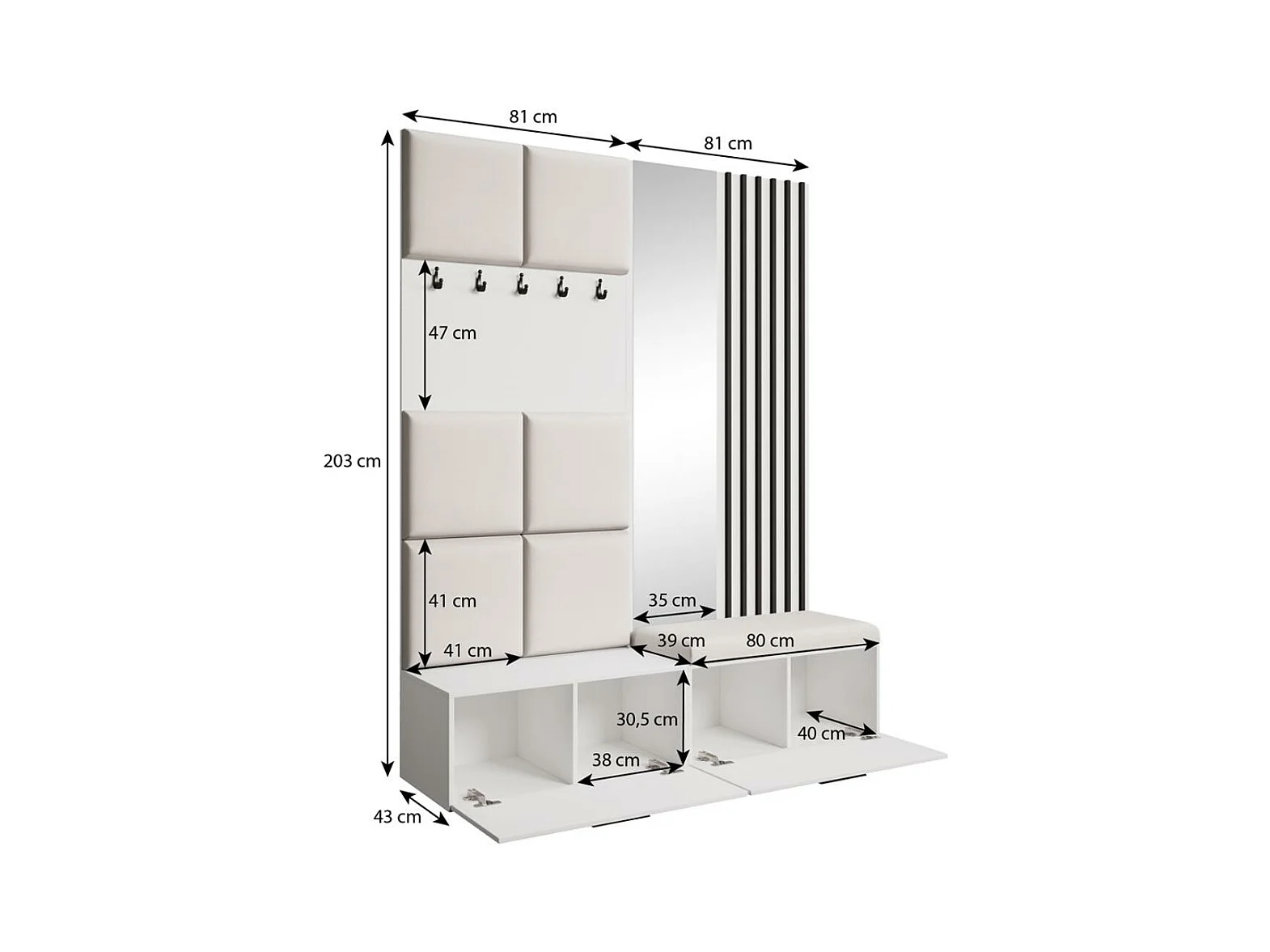 GARDEROBE Margaret II 81/203/43 avec lamelles et miroir