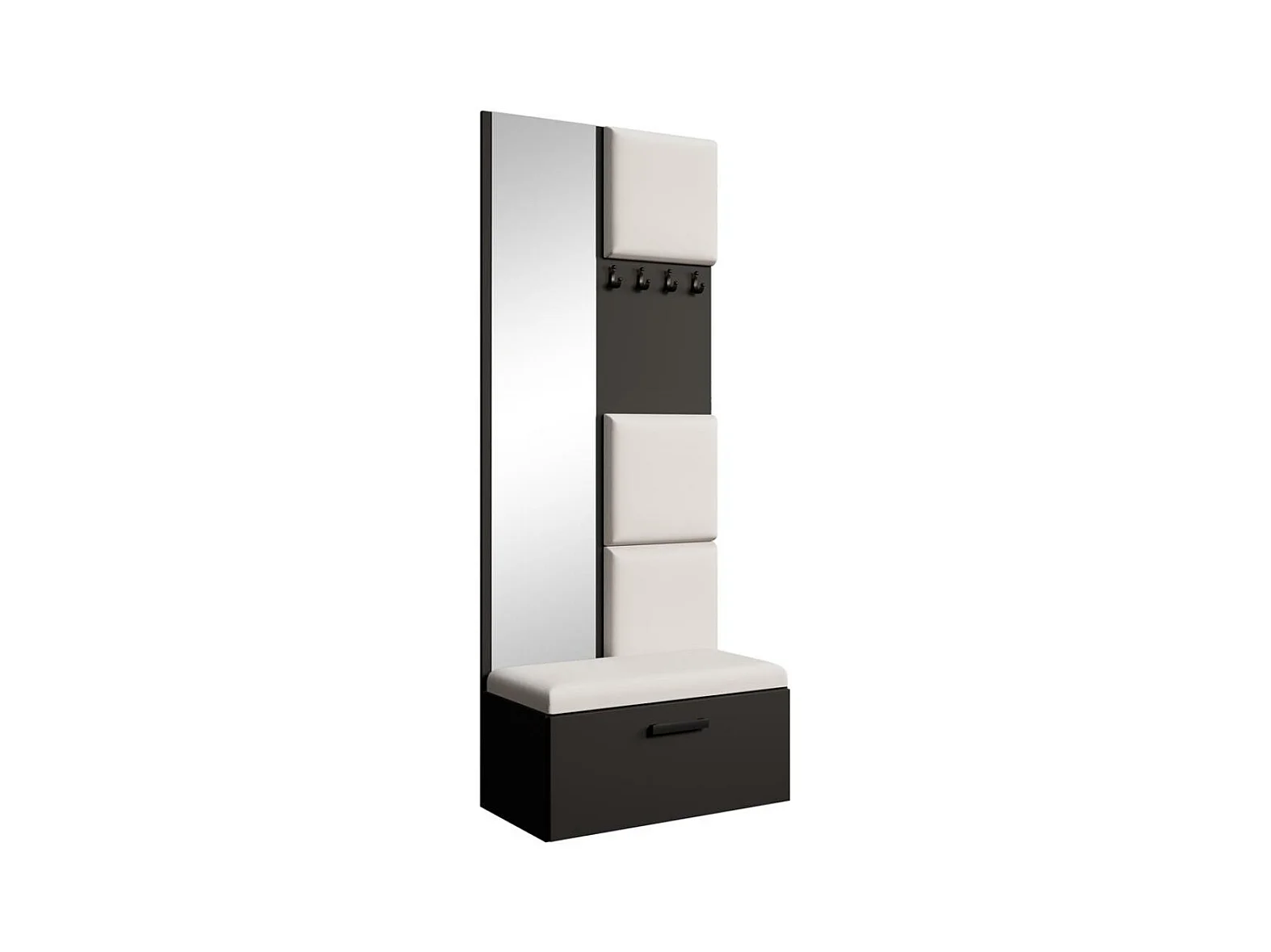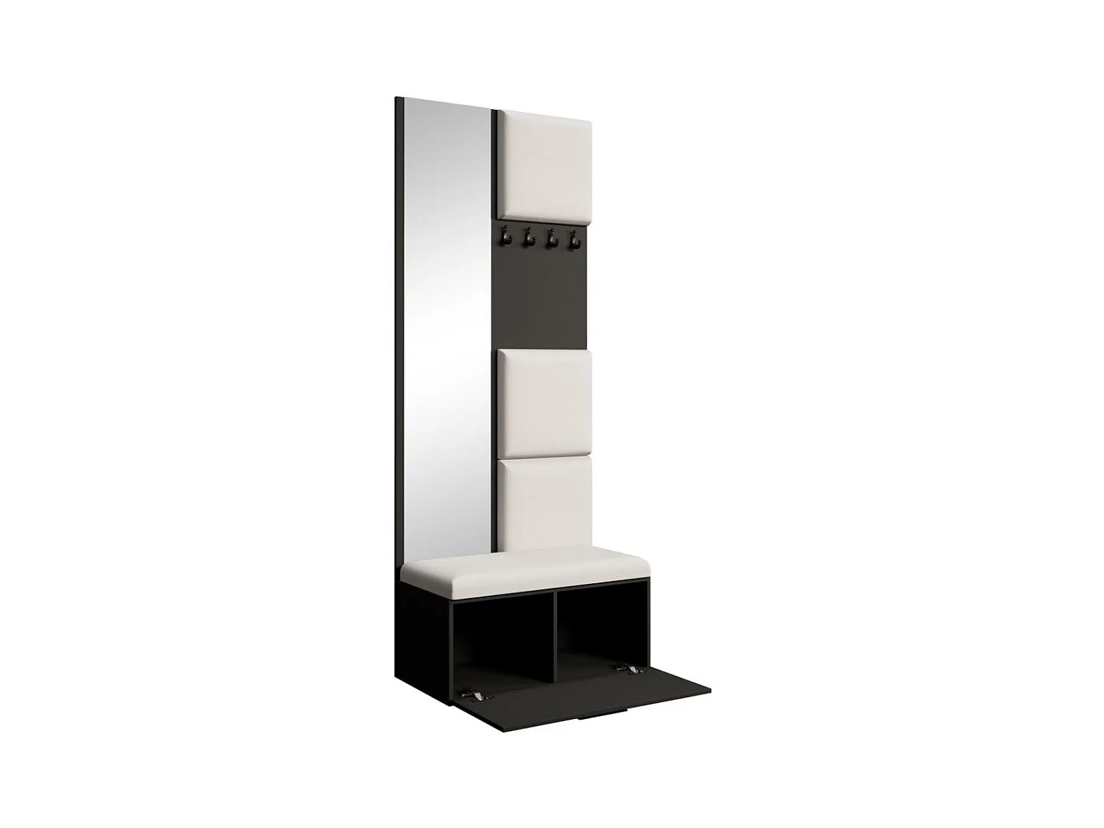 Ensemble de placard d'entrée avec 5 crochets, miroir, rangement à chaussures et banc, MDF, noir et naturel (100x38x191cm)