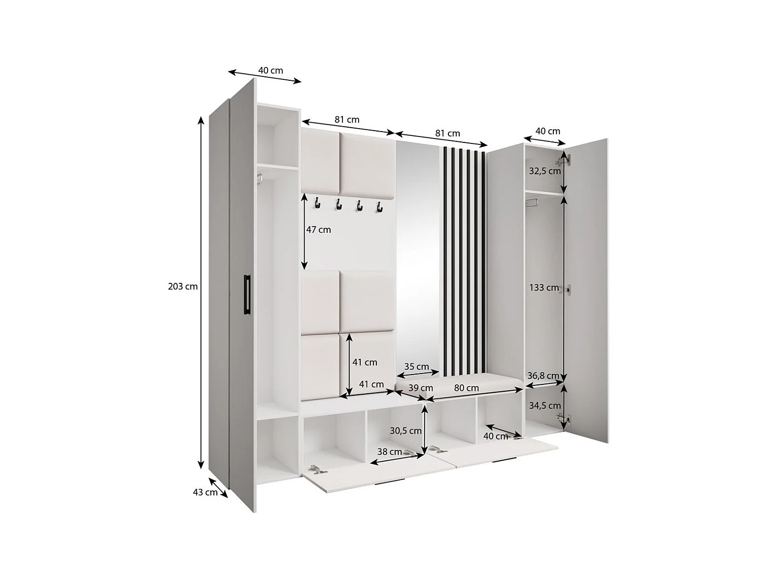 GARDEROBE Margaret I+I 162/203/43 avec panneaux rembourrés et armoire à chaussures