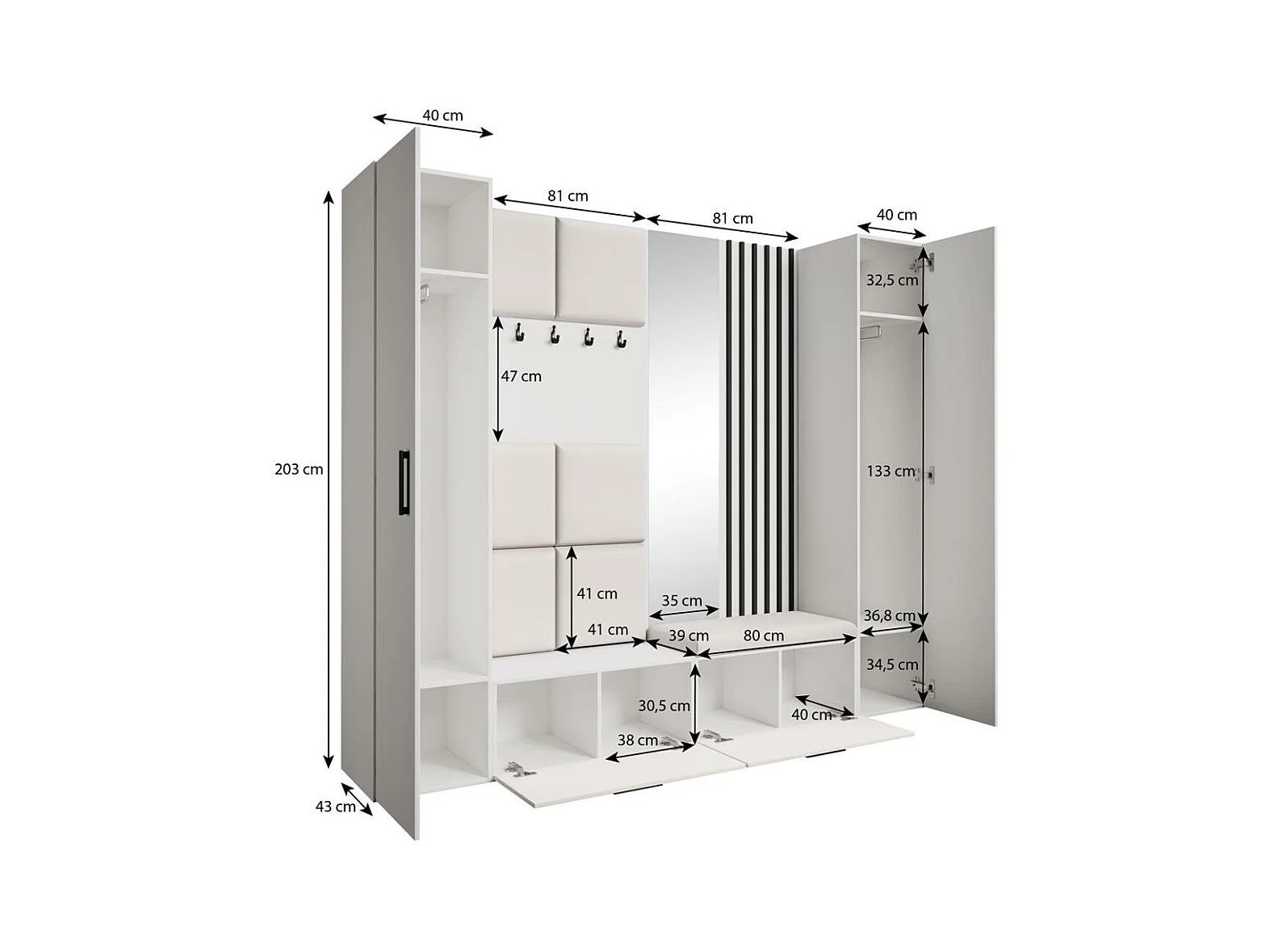 GARDEROBE Margaret I+I 162/203/43 avec panneaux rembourrés et armoire à chaussures