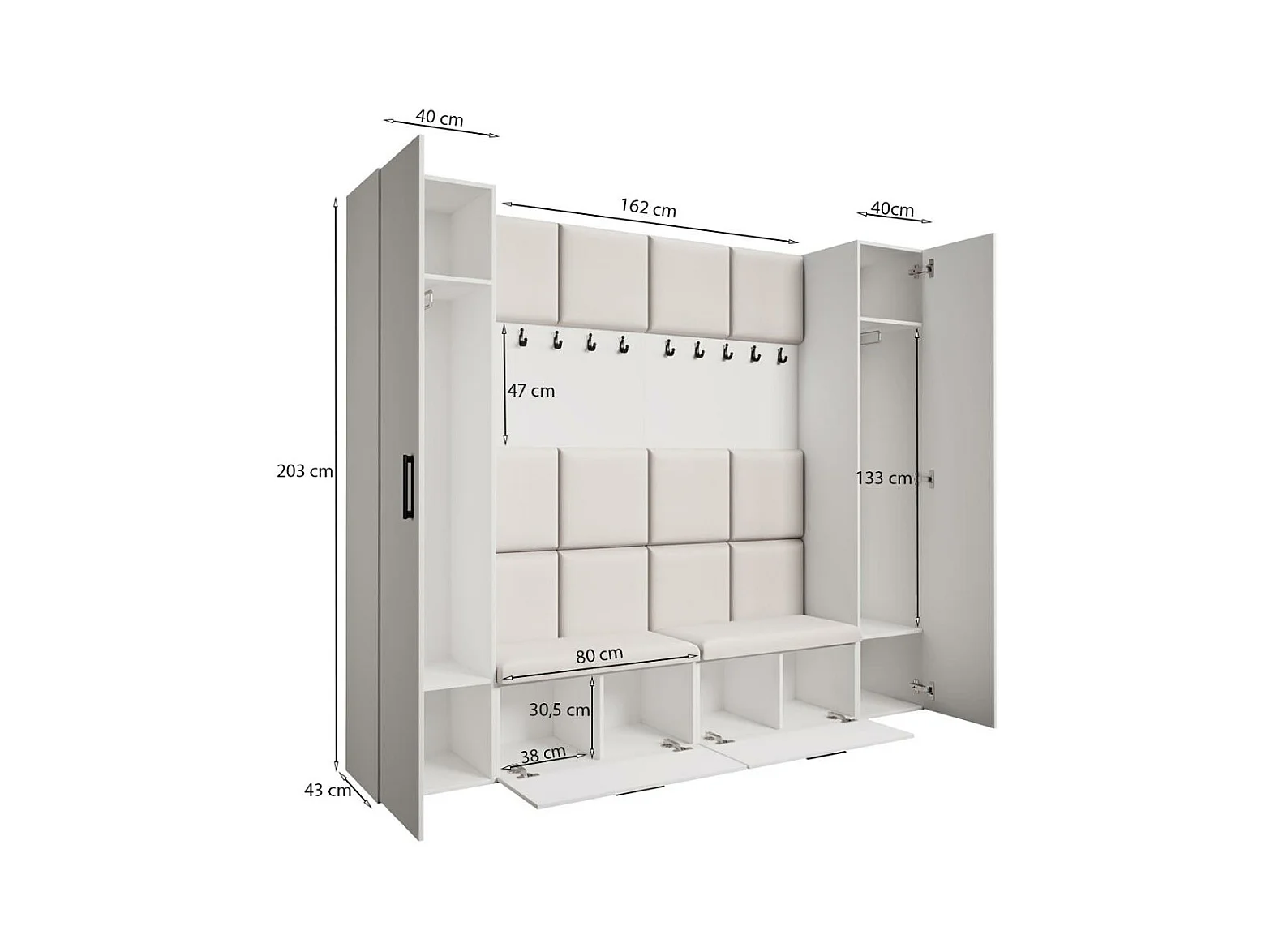 GARDEROBE Margaret I+I 162/203/43 avec panneaux rembourrés et armoire à chaussures