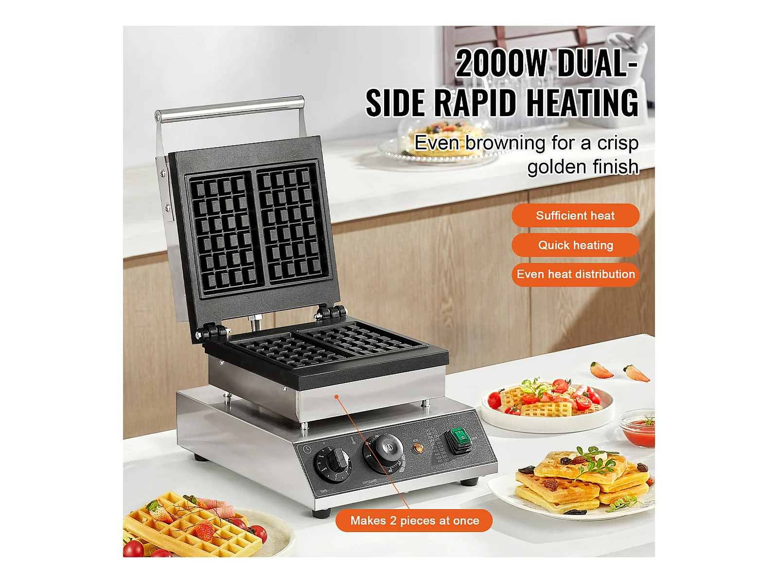 Gaufrier SucceBuy Machine à Gaufres Commerciale 2PCS 2000W Machine de Cuisson Rectangulaire